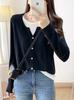 Combinação de cores Fake Two-piece Round Neck Malha Camisola Outono e Inverno Coreano Macio Cera Slim-fit Emagrecimento Manga Comprida Contraste Cor Casaco Top Mulheres