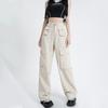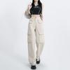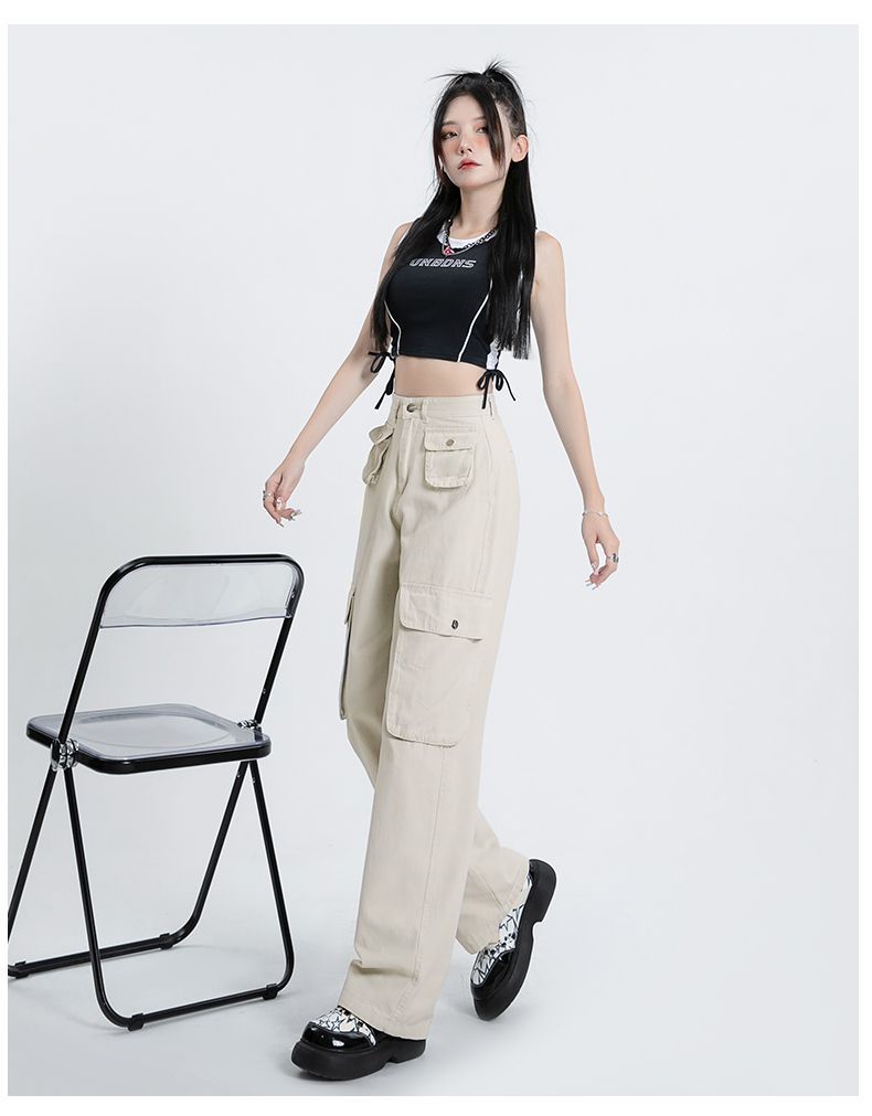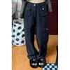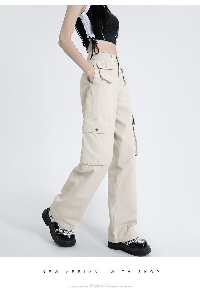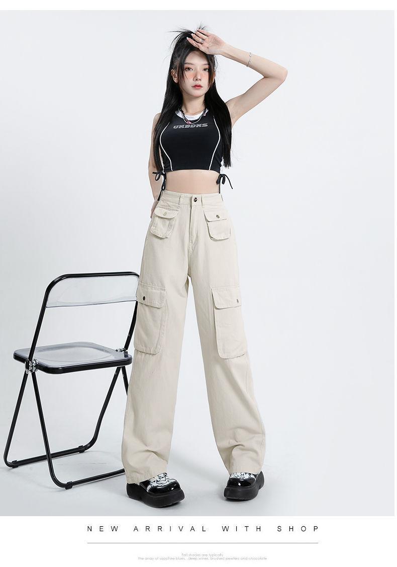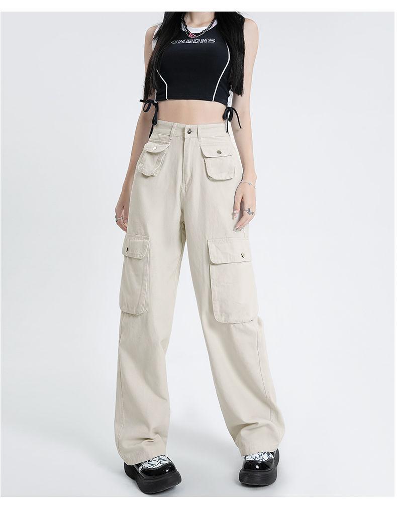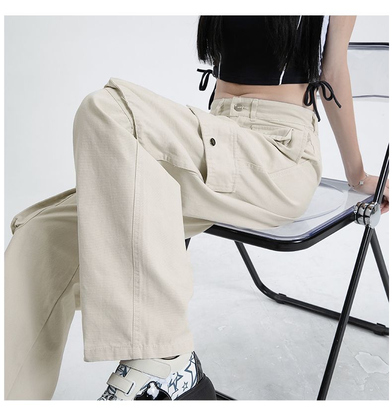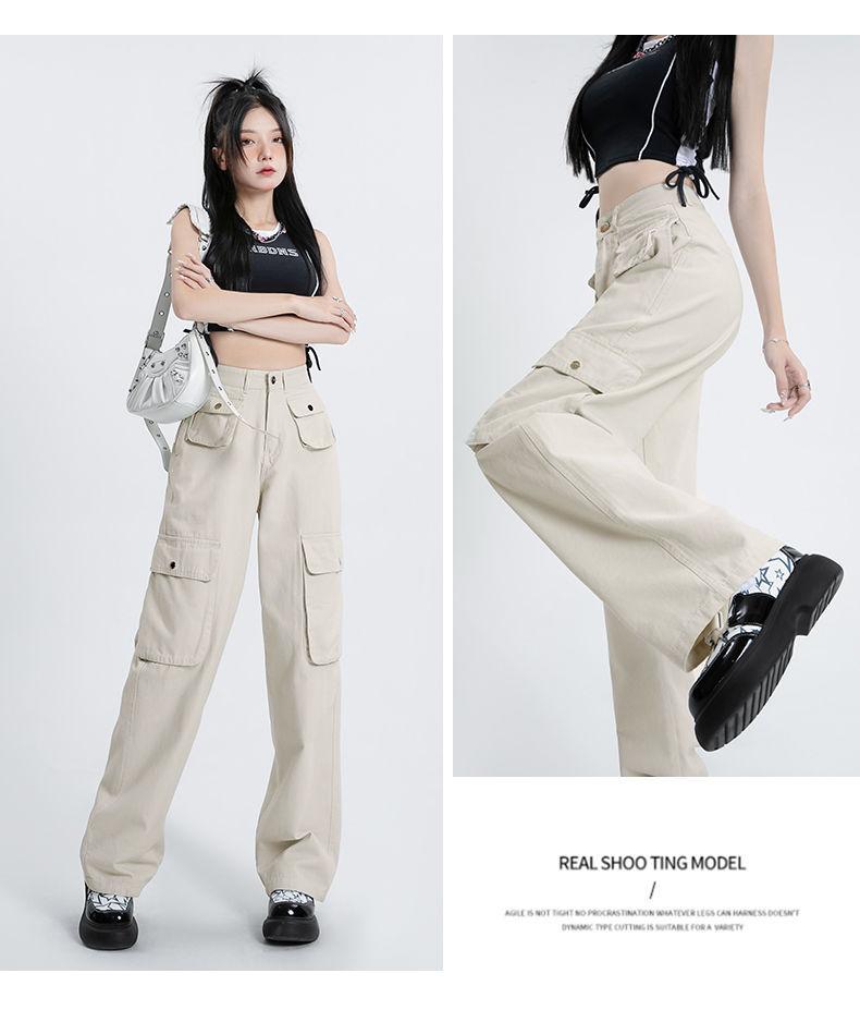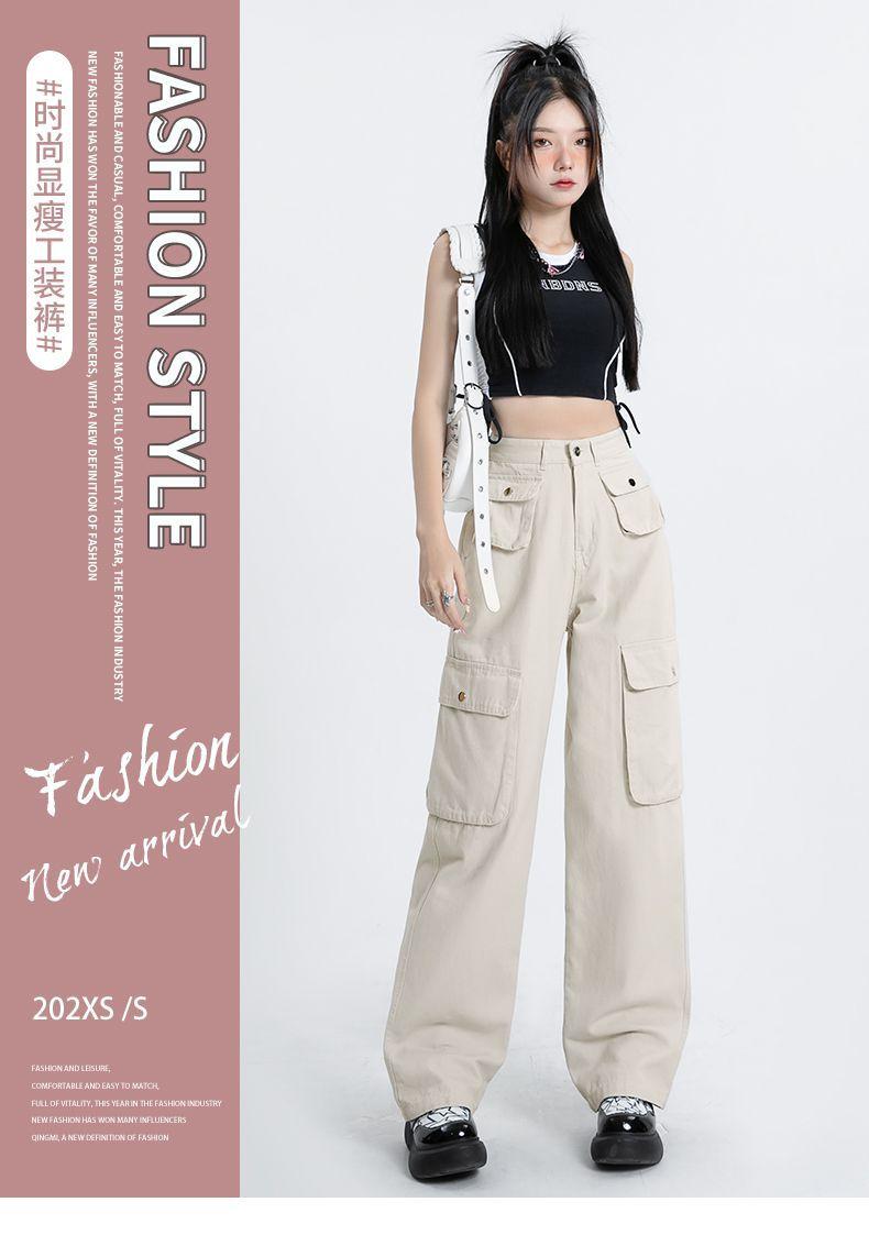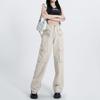 Damasco Macacão Americano Feminino Verão 2024 Novo Cintura Alta Retro Solto Reto Emagrecimento Perna Larga Calças Casuais