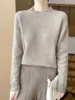 Suéter Feminino de Lã Pura de Gola Redonda Falso Duas Peças Primavera & Outono Novo Casaco de Tricô com Fio Torcido
