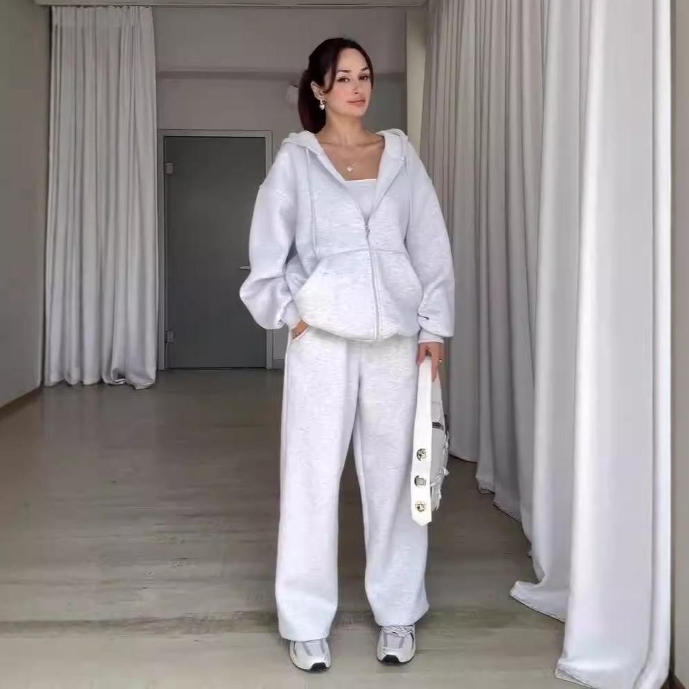 Outono 2024 Nova Moda Europeia e Americana Amazon Estilo Preguiçoso Moletom com Capuz Calças Esportivas Casuais Conjunto de Duas Peças