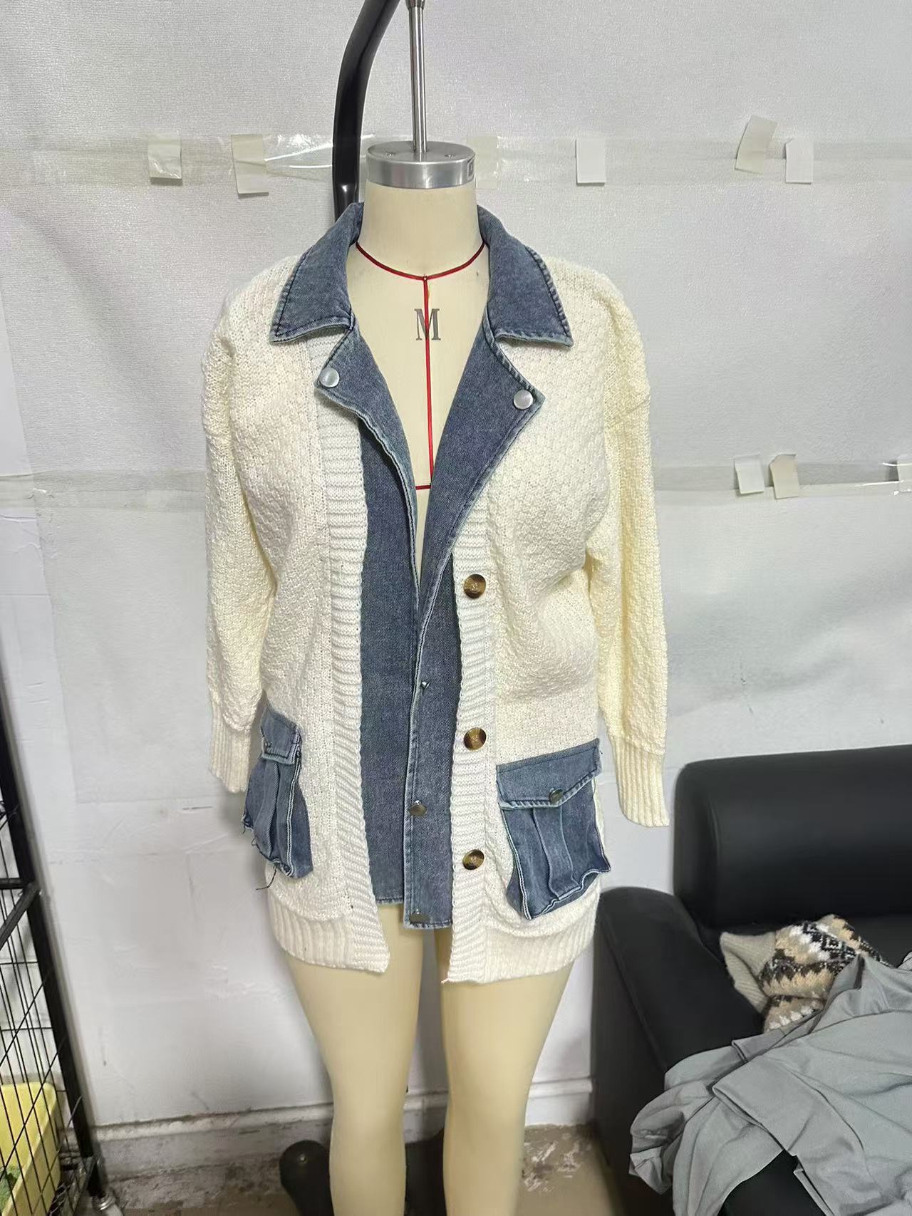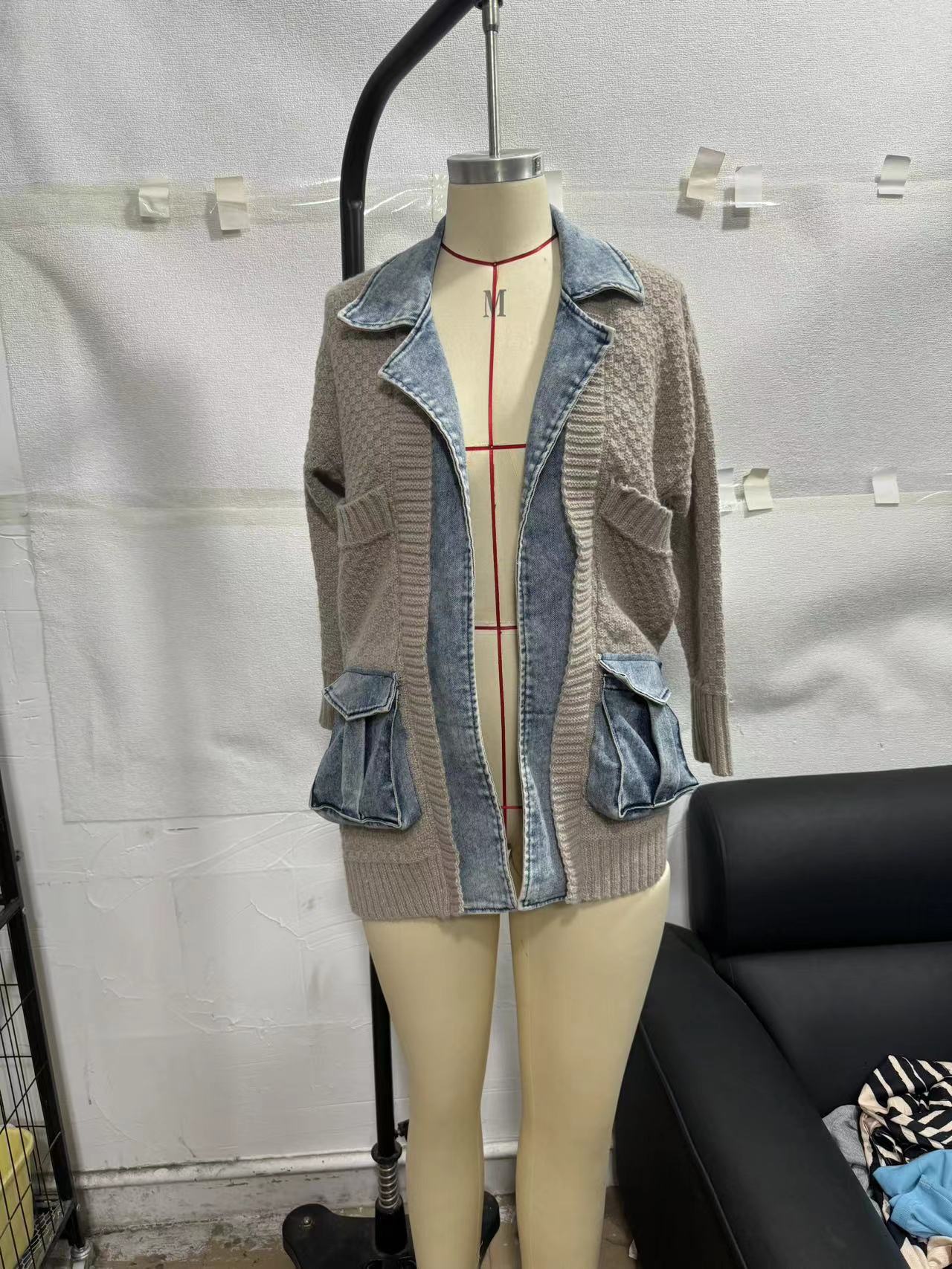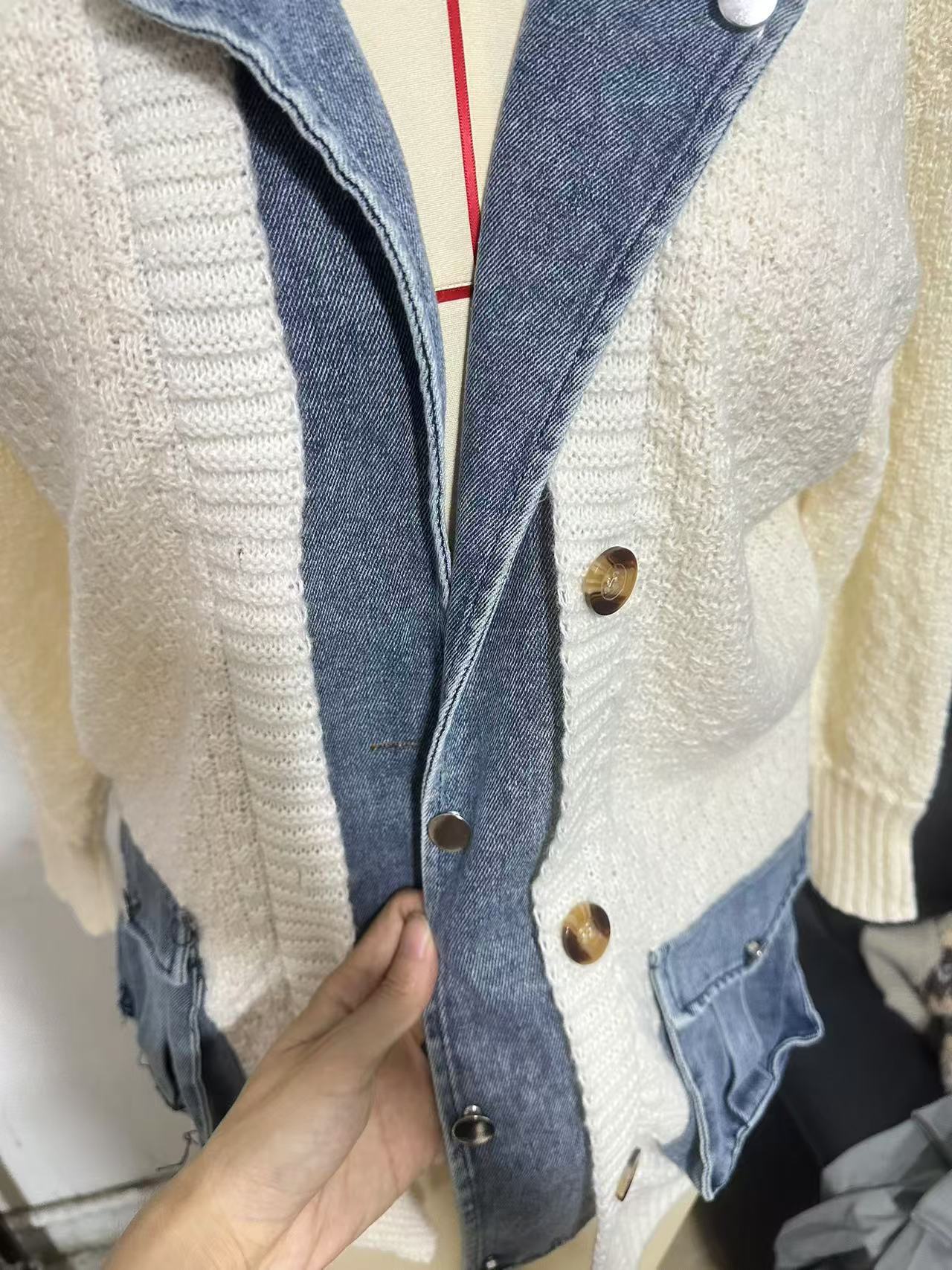 Outono 2024 Novo Estilo Preguiçoso Coreano Falso Design de Duas Peças Solto Suéter de Malha Suéter Jaqueta Cardigan