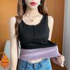 Camisola Quente Camisola Feminina Outono e Inverno Forrada de Lã Espessada Sem Mangas Top com Camada de Base Alça de Camisa Cinto de Veludo Almofada no Peito