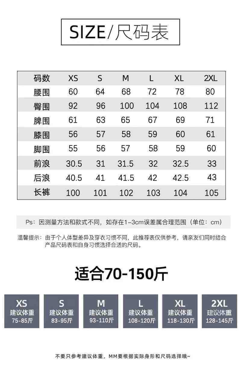 XS, S, M, L, XL, 2XL