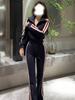 Conjunto Esportivo Casual Feminino Outono Nova Chegada Listrado Fashion Slim-fit Top Curto Calças de Perna Larga Conjunto de Duas Peças
