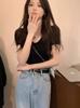 Estilo coreano Verão Dopamina Cor Combinando U Colarinho Cintura Slim-fit Top All-match Sweet Girl Short-sleeved Elastic Knitted T-shirt para Mulheres