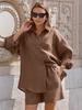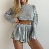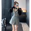 Terno esportivo europeu e americano feminino 2024 outono novo retrô casual solto slim suéter shorts estilo ocidental de duas peças