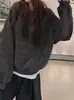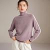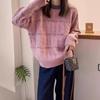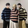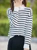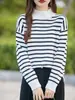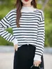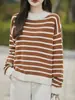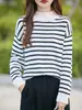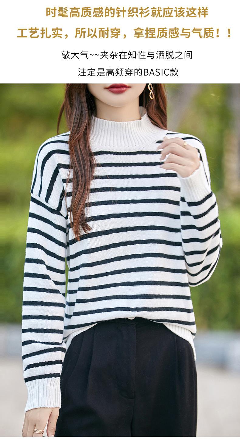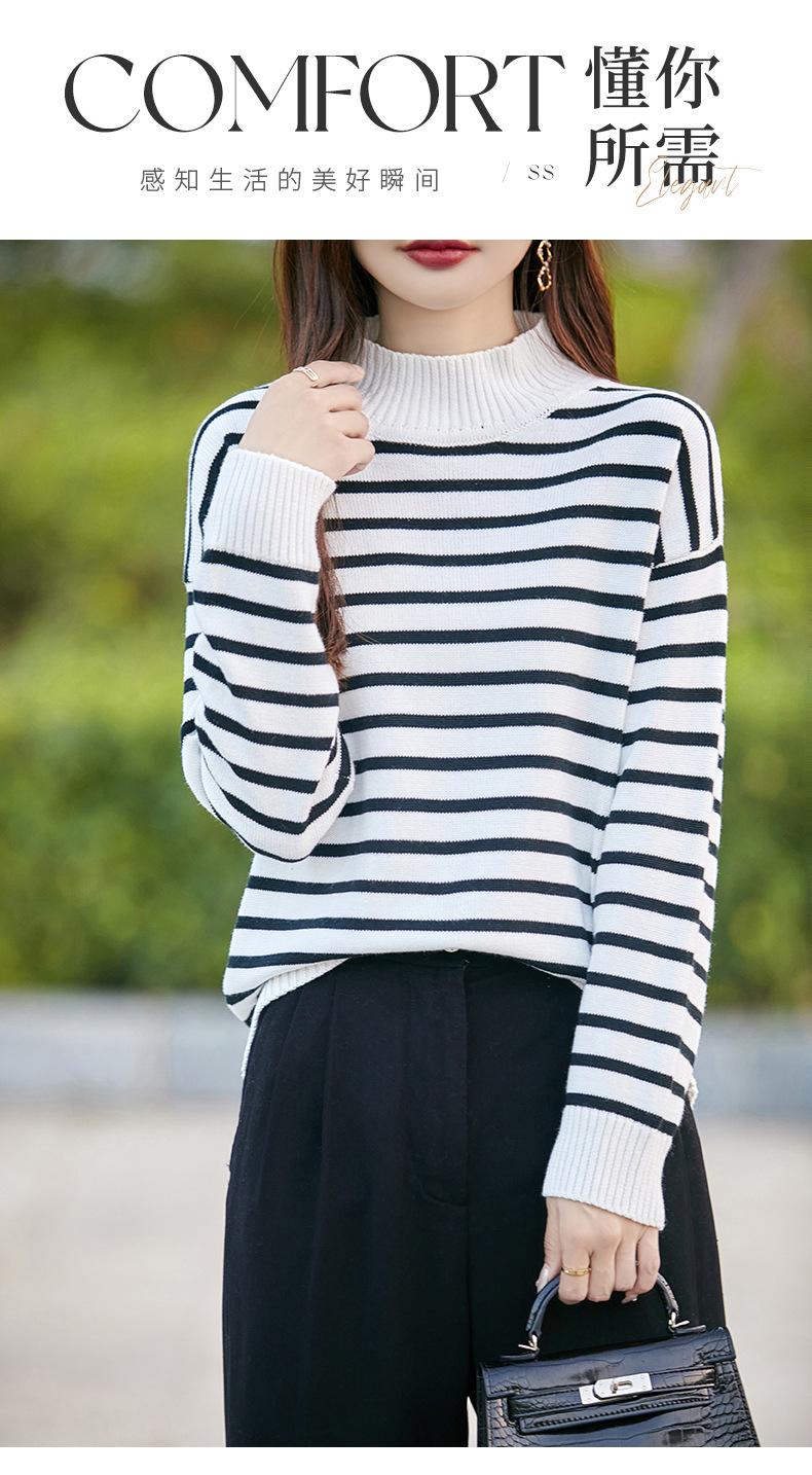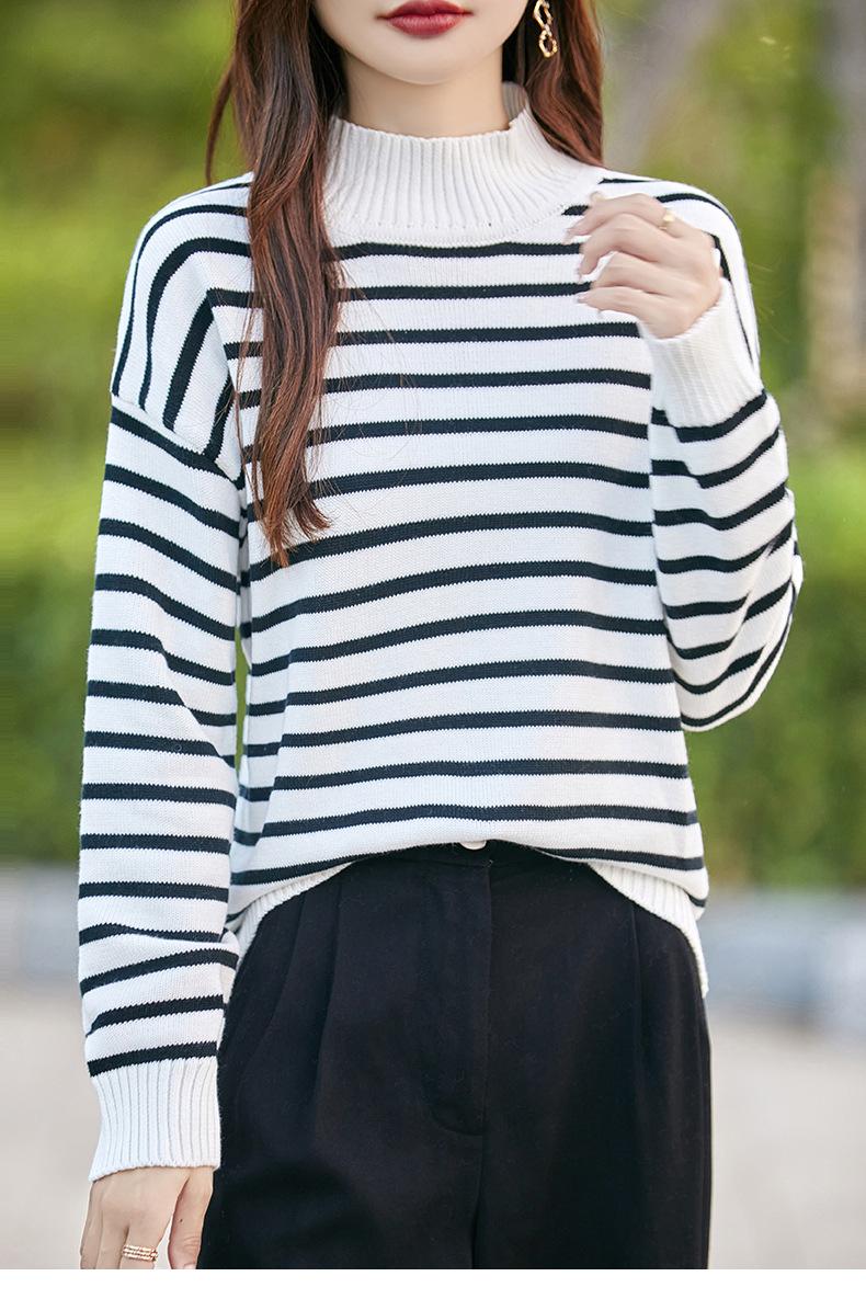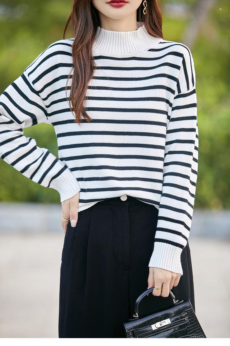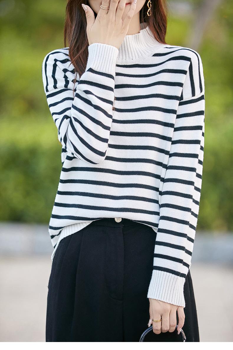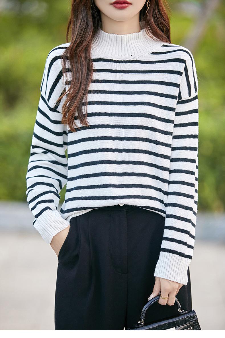 Outono e inverno nova camisa de base de malha de manga comprida listrada de algodão feminina meia gola alta suéter solto e grosso