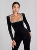 Macacão Transfronteiriço Amazon 2025 Outono Gola Quadrada Diamante Manga Longa Flare para Mulheres Luxo Acessível e de Alta Qualidade