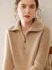 2025 Novo Pulôver Outono e Inverno Meio Zíper Solto Suéter de Caxemira Feminino Listrado Espessado Suéter Gola Lapela Preguiçosa