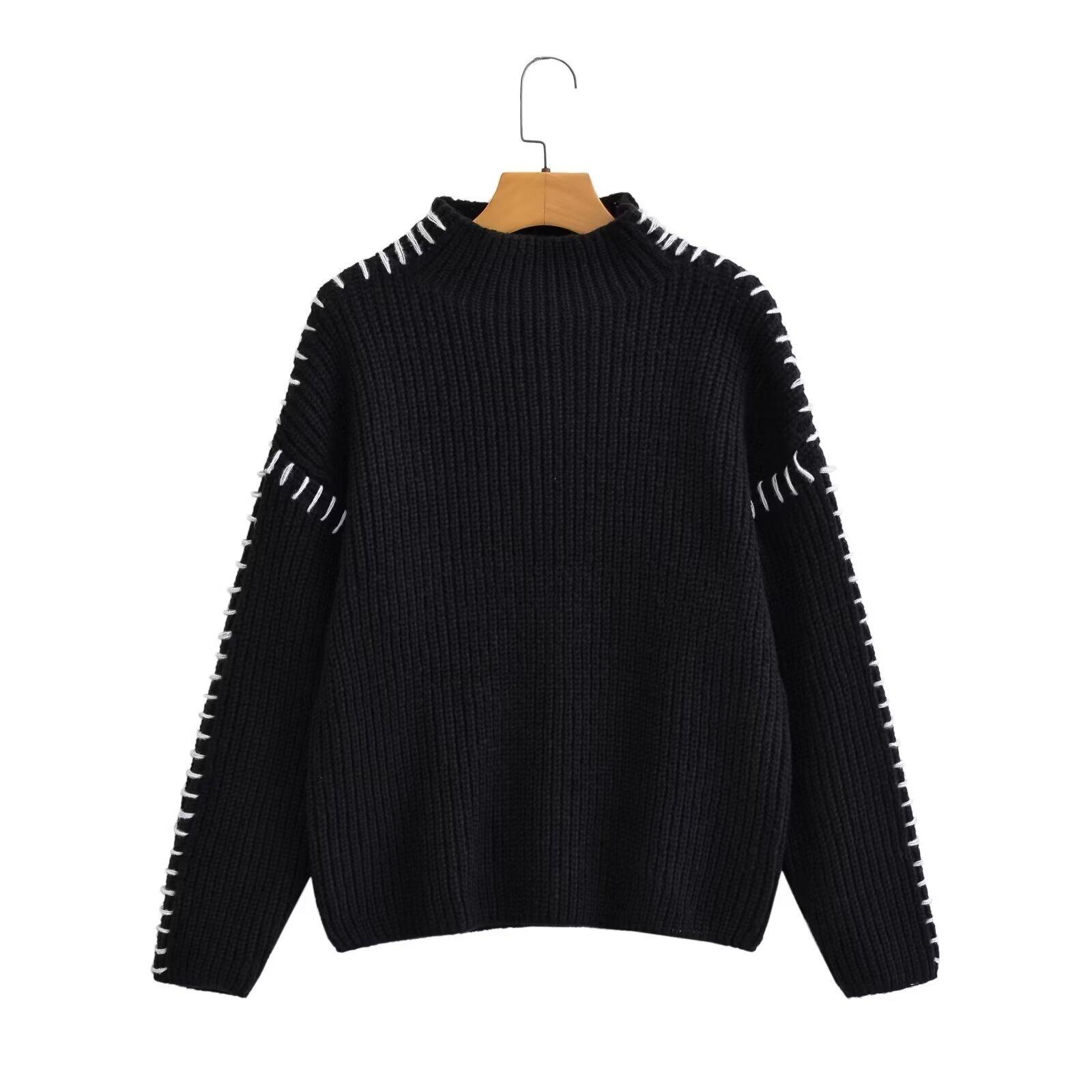 Exportação de Roupas Europeias e Americanas 2024 Novo Estilo de Outono Simples e Versátil Tricô Casual de Manga Comprida com Gola Redonda