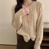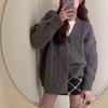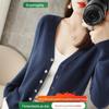Cardigã de Tricô de Caxemira Elegante Casual de Gola Redonda para Mulheres 25 Novo Outono e Inverno Jaqueta Retrô Torcida Versátil Jacquard Roupa Exterior