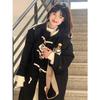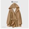 Casaco Feminino de Caxemira Grosso com Capuz e Cor Clara Outono Inverno 2023 Cardigã Feminino Casual Solto Camada de Ar Comprimento Médio