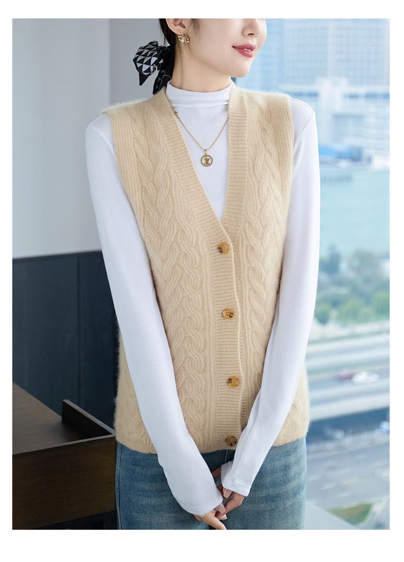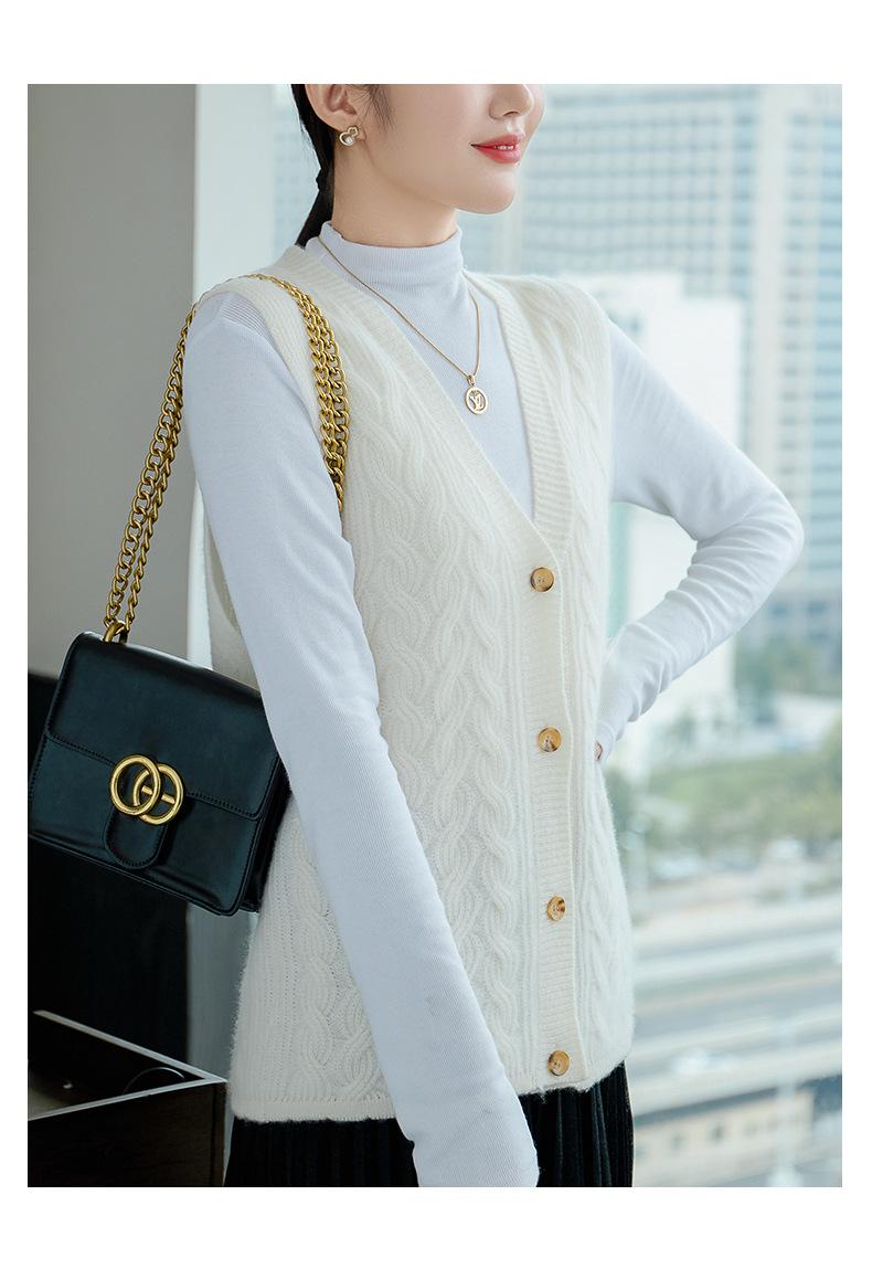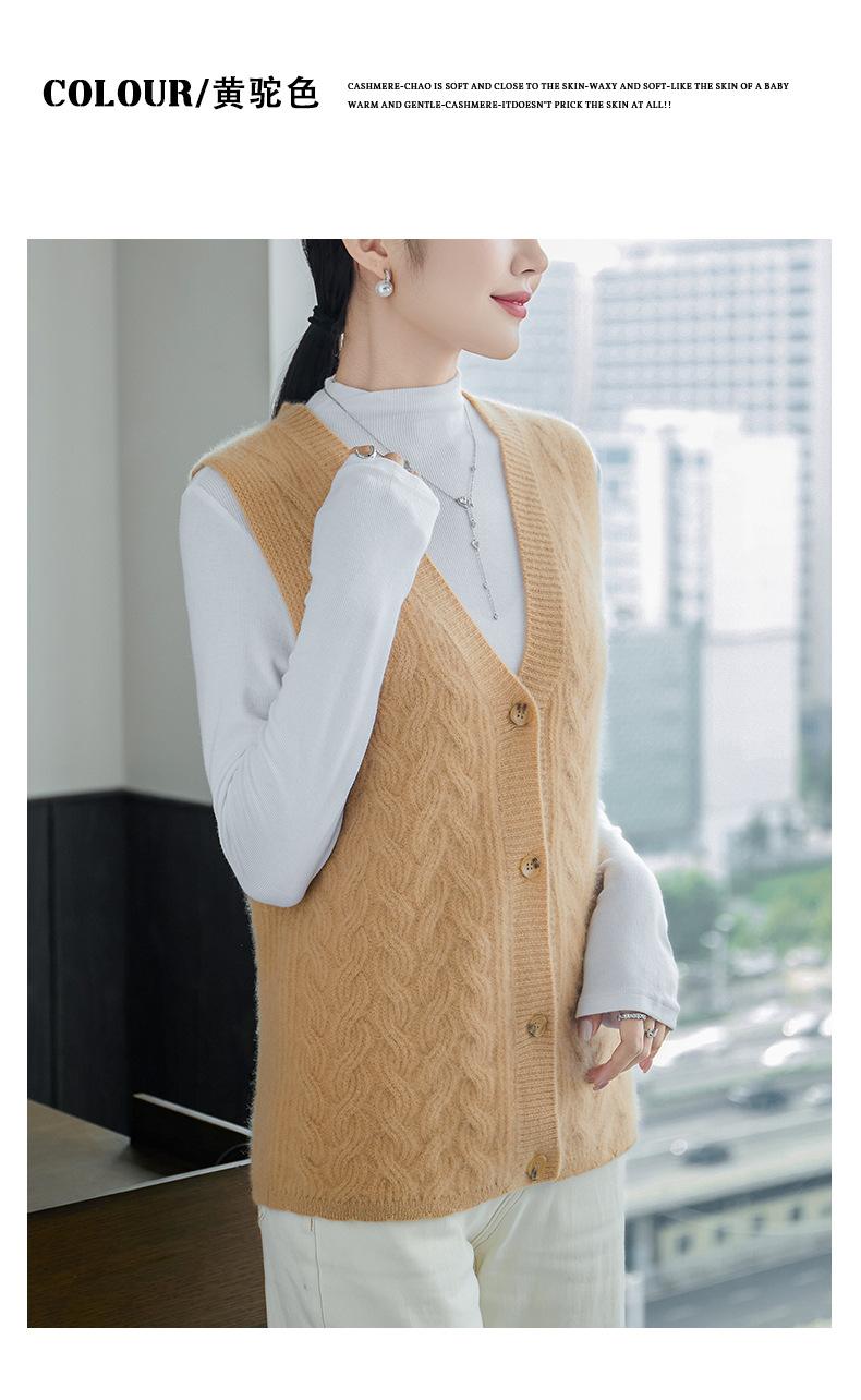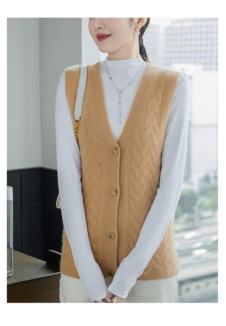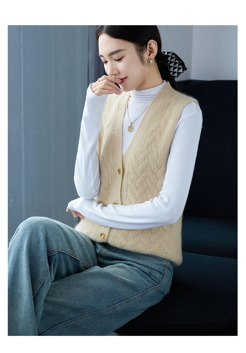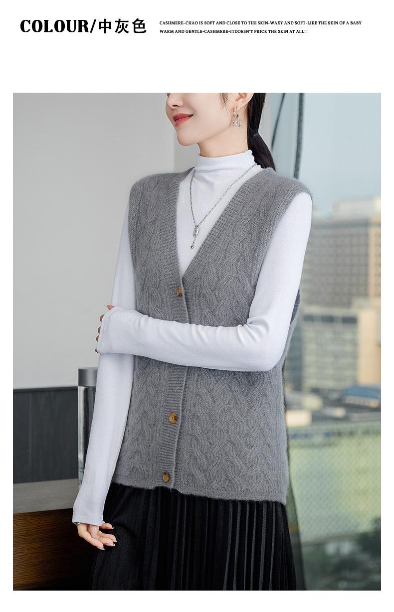 2024 Outono e Inverno Novo Cardigan de Malha de Caxemira Sem Mangas Colete Feminino com Decote em V Jaqueta Empilhada Macia Cerosa Amiga da Pele All-match
