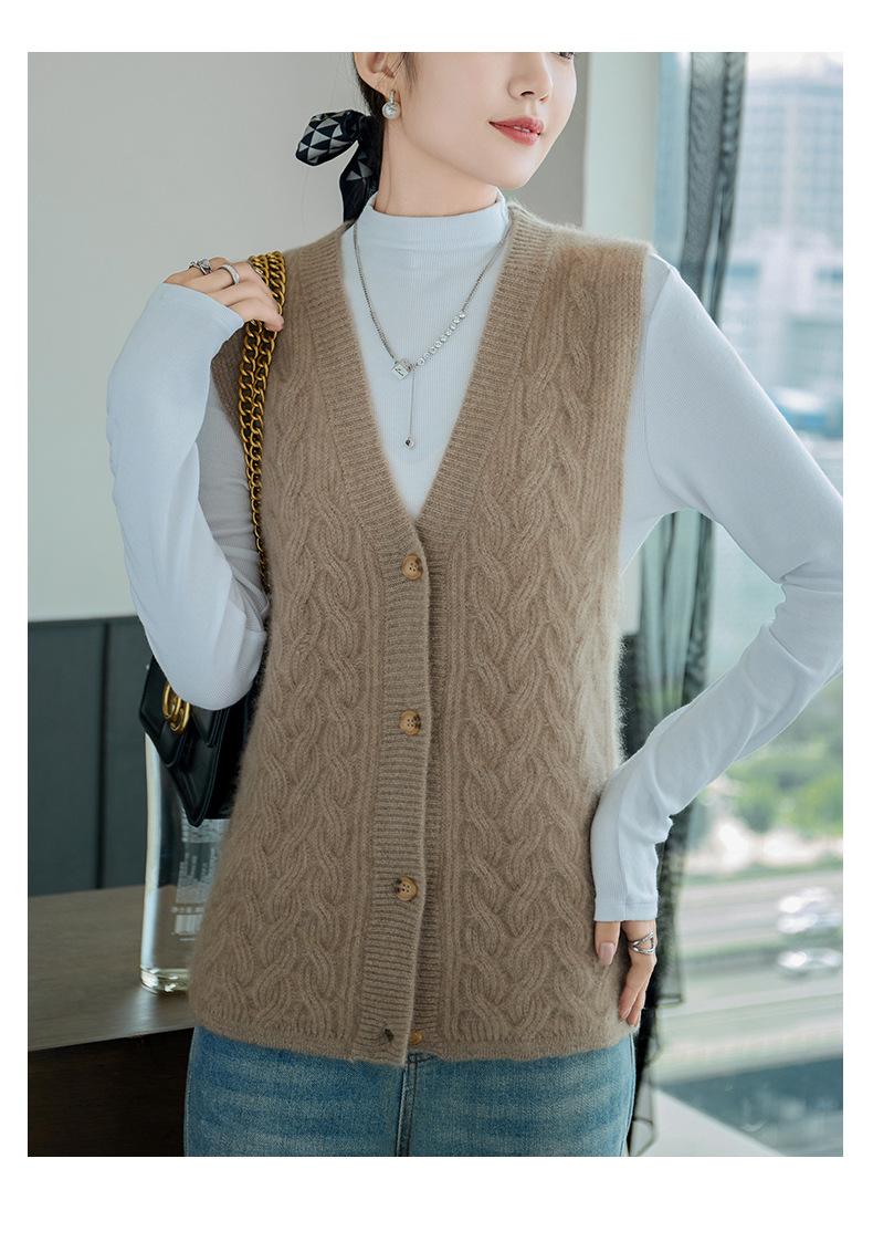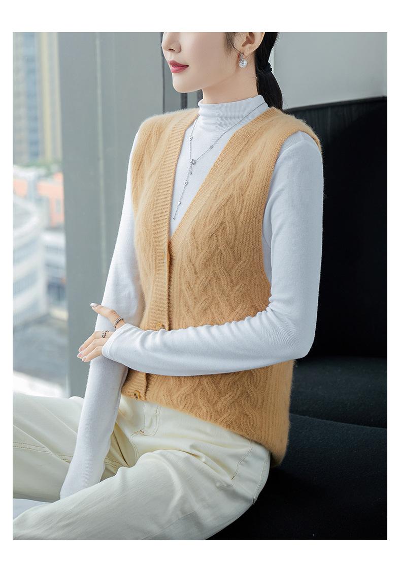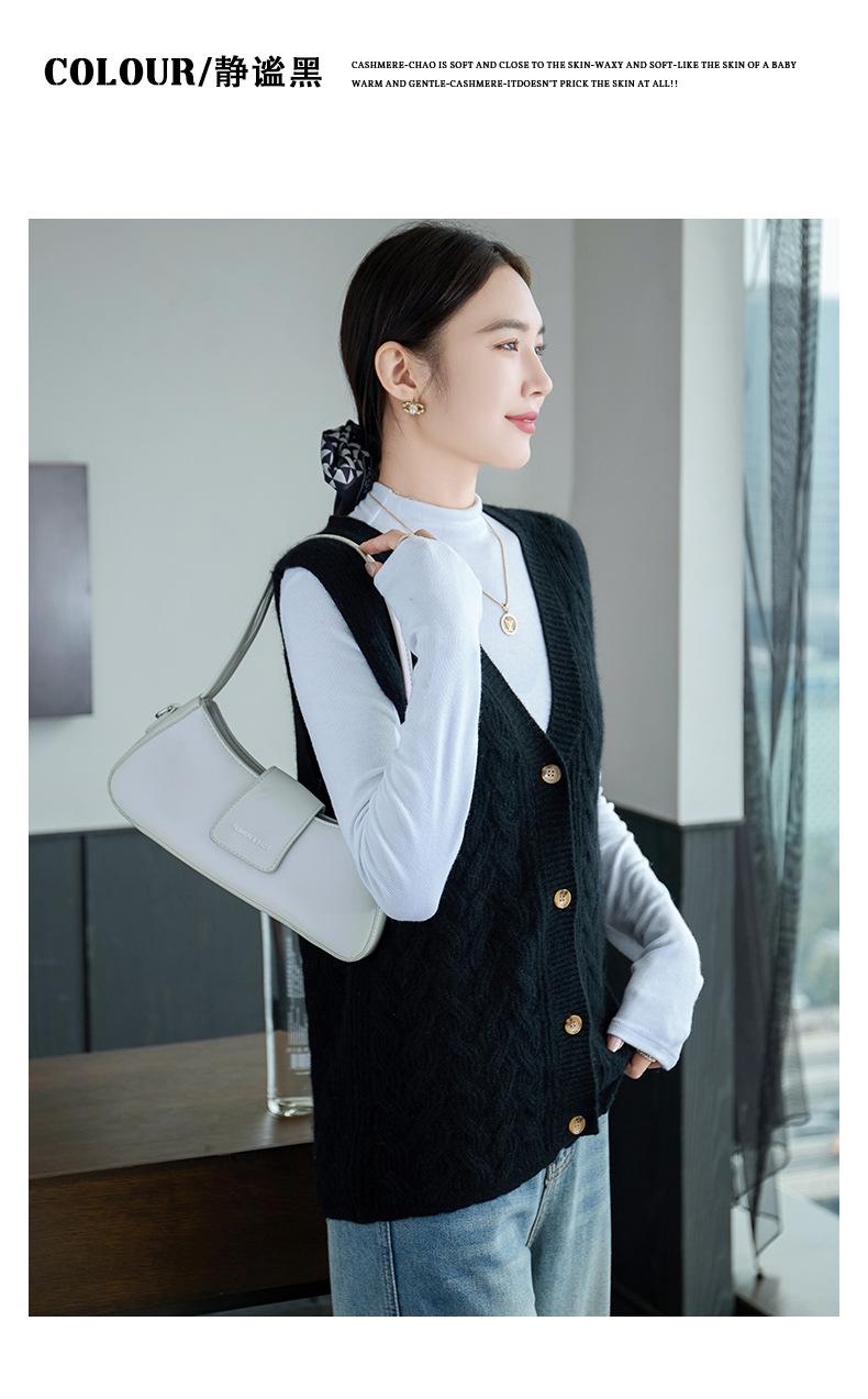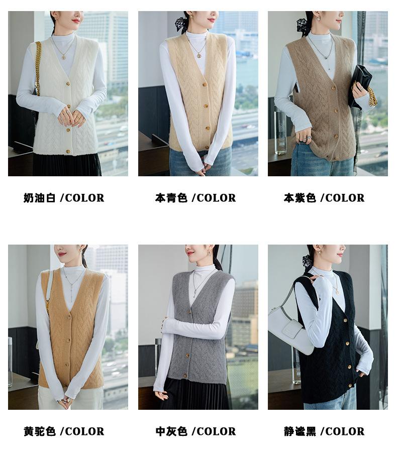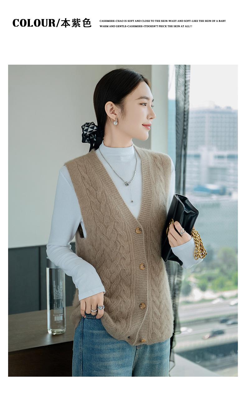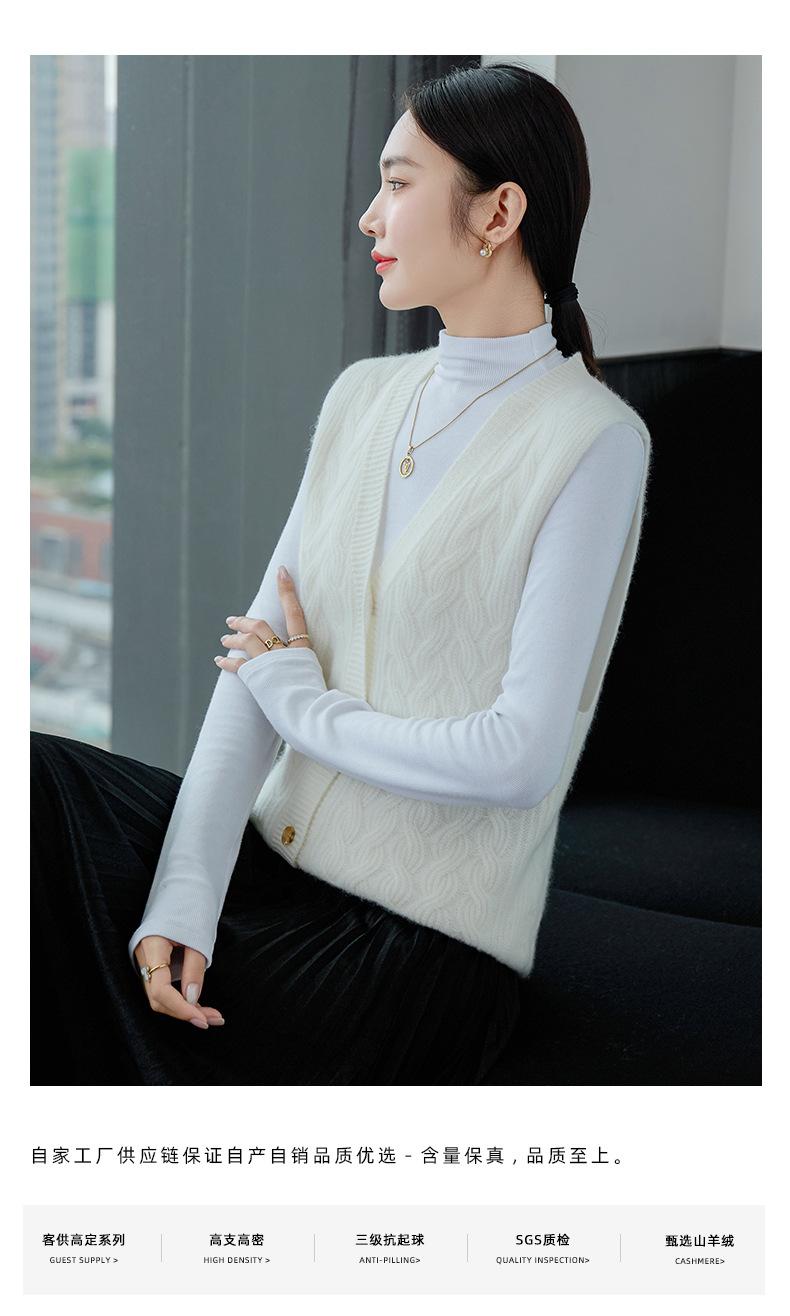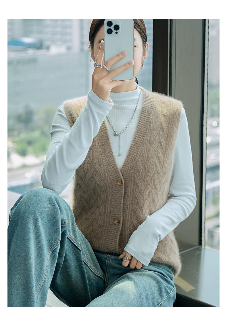 2024 Outono e Inverno Novo Cardigan de Malha de Caxemira Sem Mangas Colete Feminino com Decote em V Jaqueta Empilhada Macia Cerosa Amiga da Pele All-match