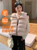Colete de Penas Feminino 2025 Outono/Inverno Novo Gola Redonda Versátil Abotoamento Simples Leve Fashion Quente Camada Interna Estilo Europeu e Americano