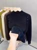 Outono e Inverno Camisola de Lã de Uma Peça Meia Gola Alta Engrossada Camisa de Base Elegante de Malha de Estilo Western para Mulheres Quente Top Ins Interno