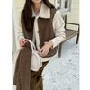 Jaqueta Colete Lã Dupla Face Estilo Workwear Bolso Grande para Mulheres Outono Inverno