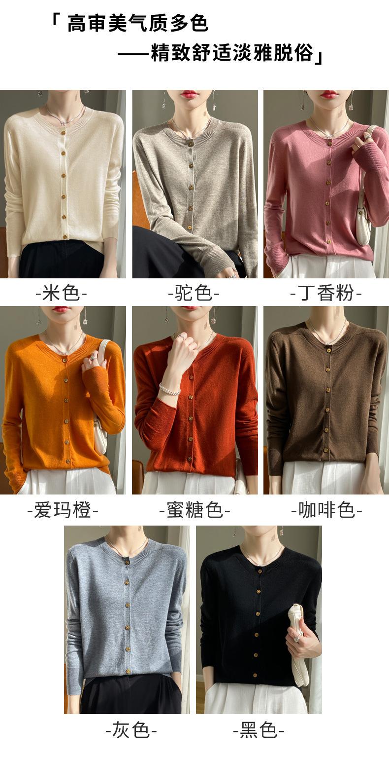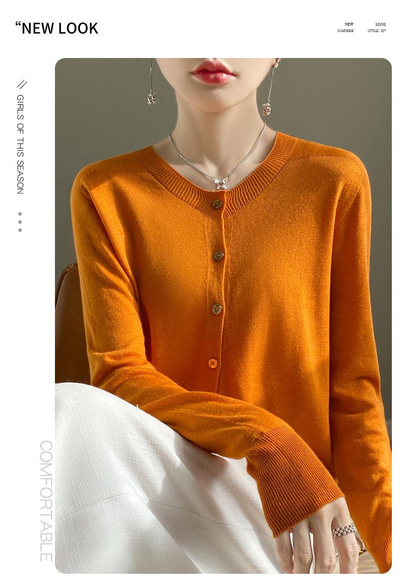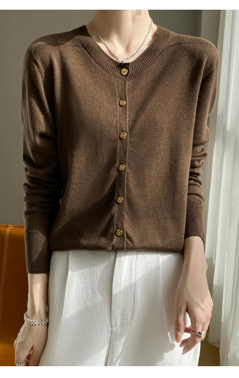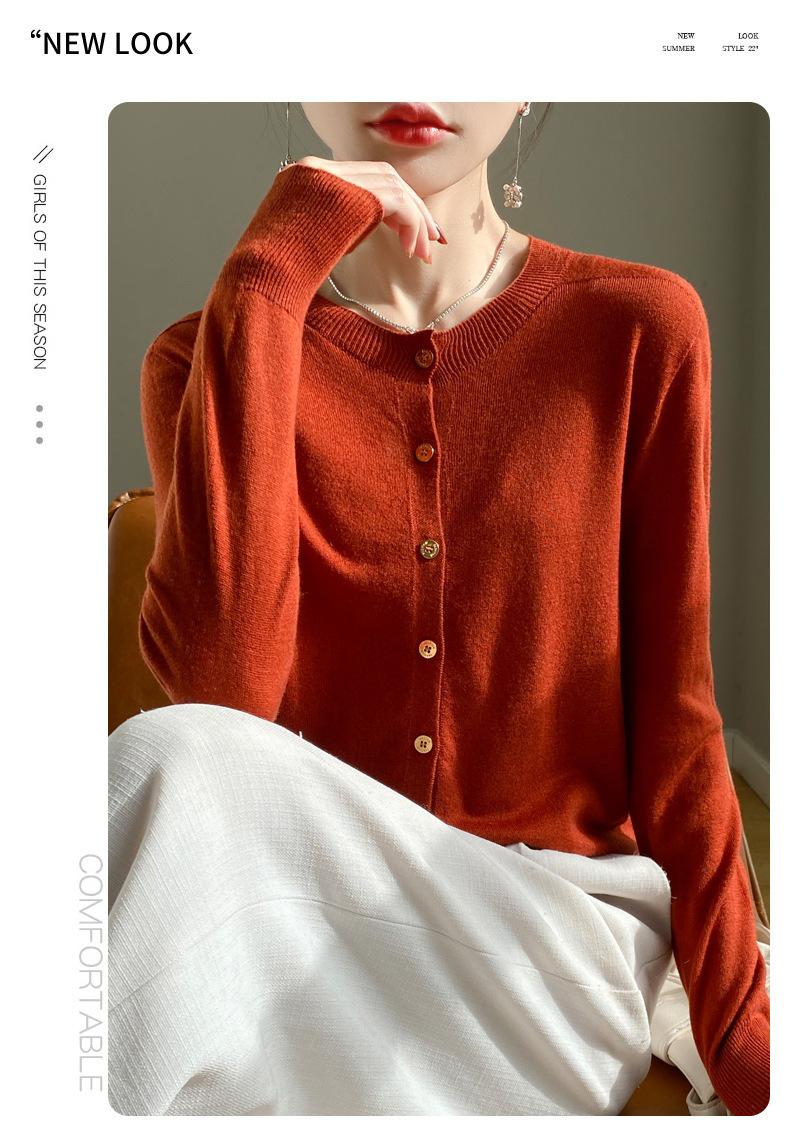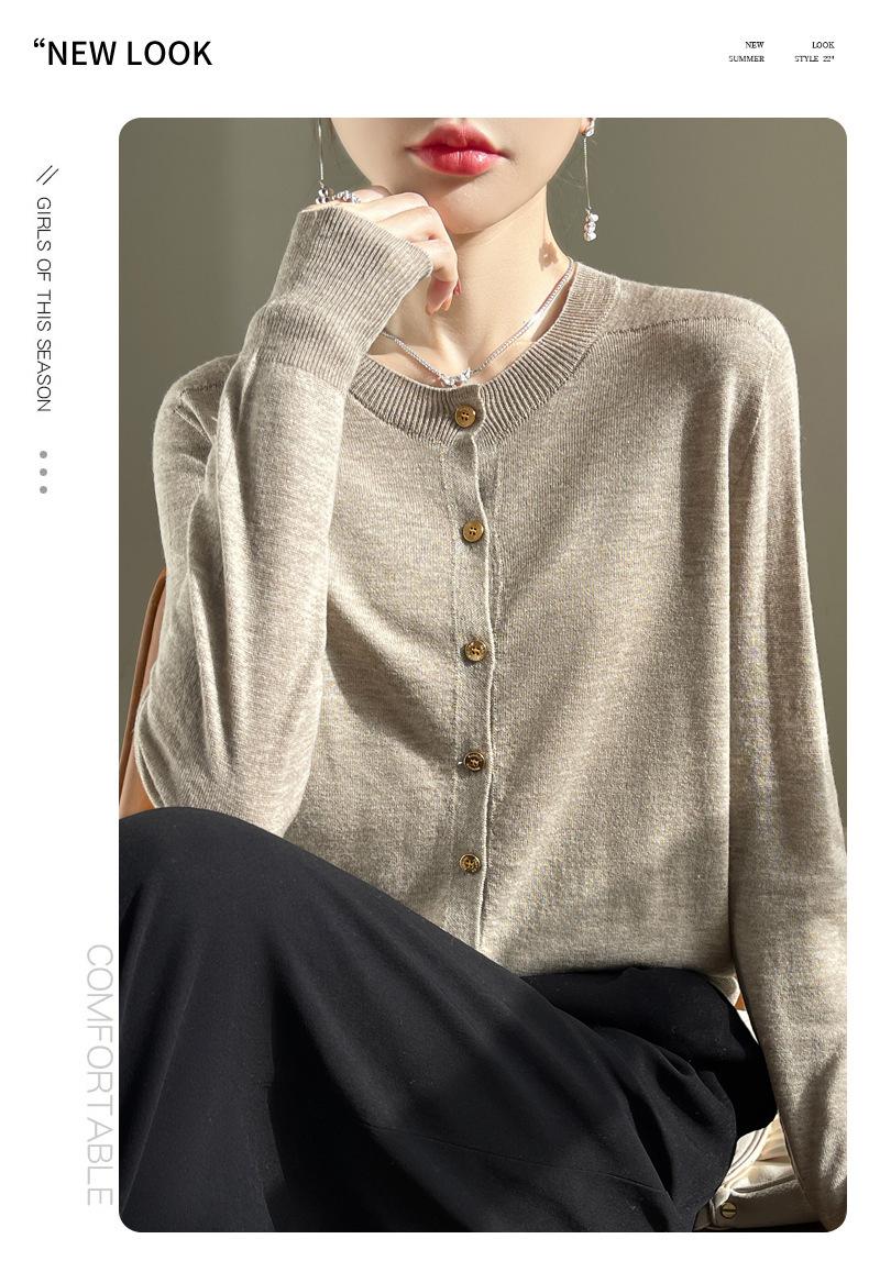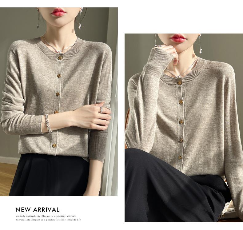 Cardigan de malha feminino, gola redonda, casaco curto, manga comprida, novo suéter solto, casaco de primeira linha, amplo, casual