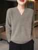Elegante decote em V pura lã pulôver feminino solto cor sólida casual simples macio cera viajante manga comprida malha inferior top