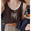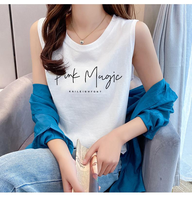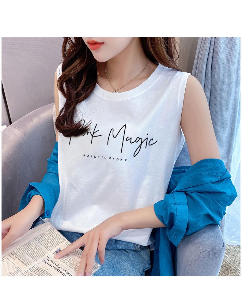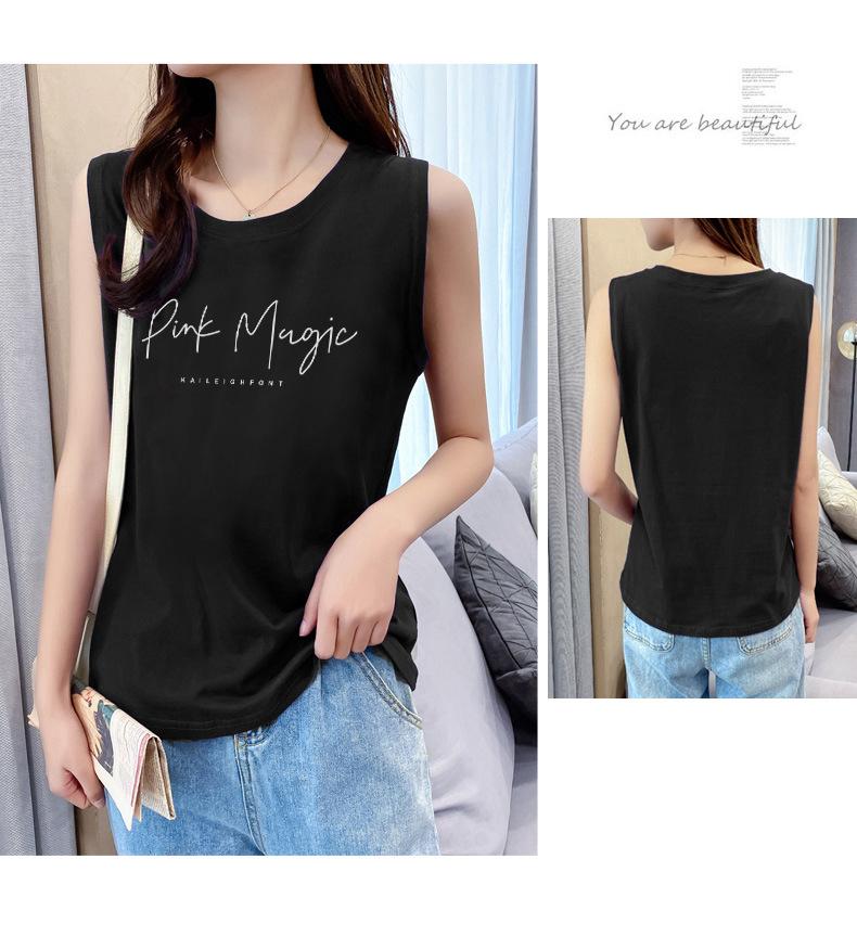 Camisola feminina de algodão verão 2024 nova roupa interna roupa externa carta estampada solta sem mangas top de menina quente