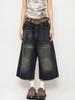 2024 Summer Niche New American Retro Old Denim Pants All-match Loose Wide-leg Straight Capri Pants