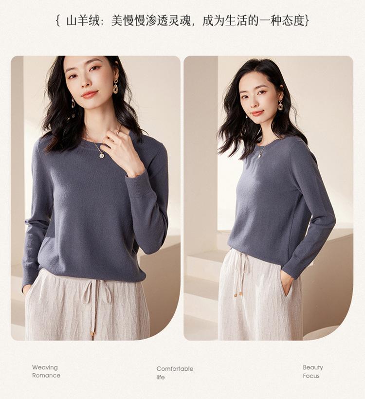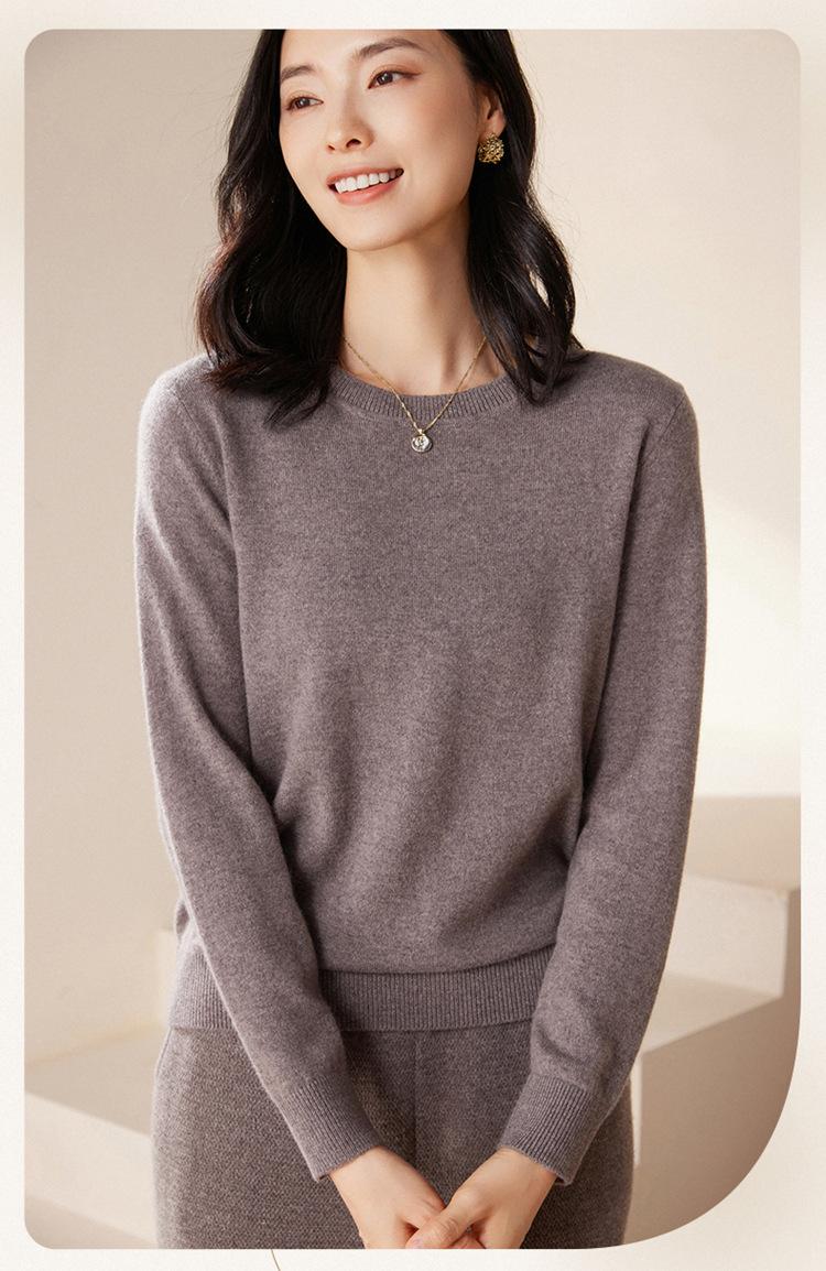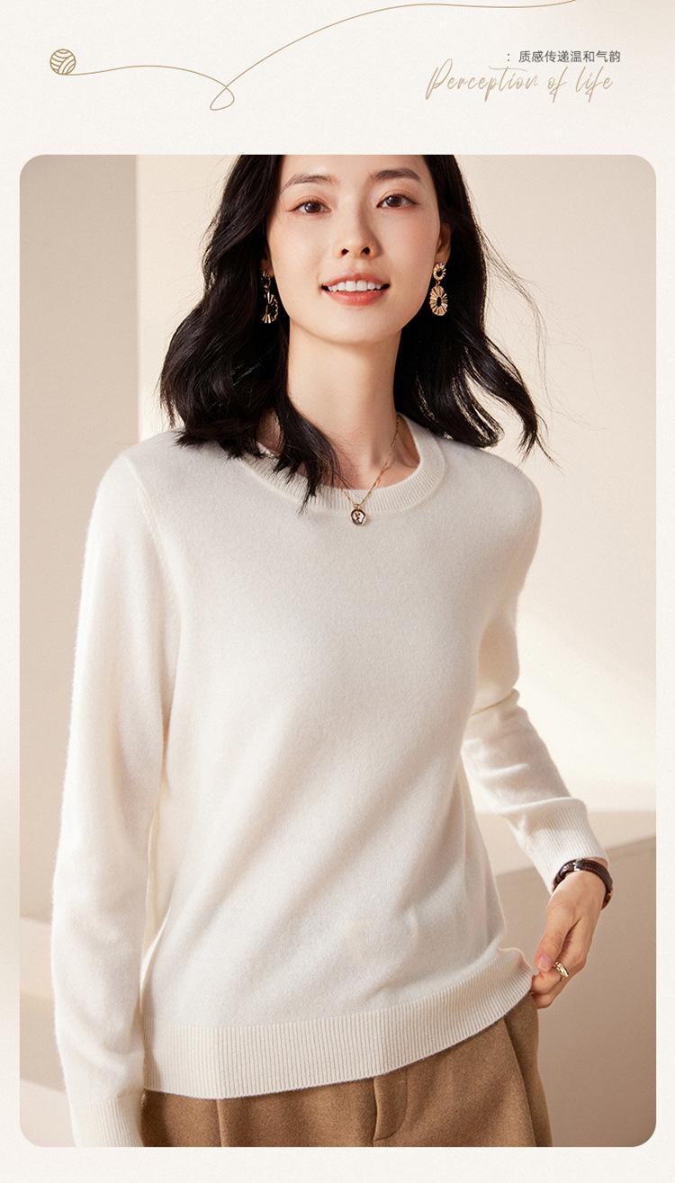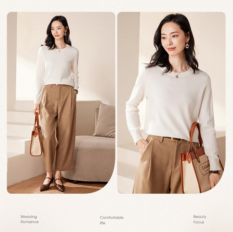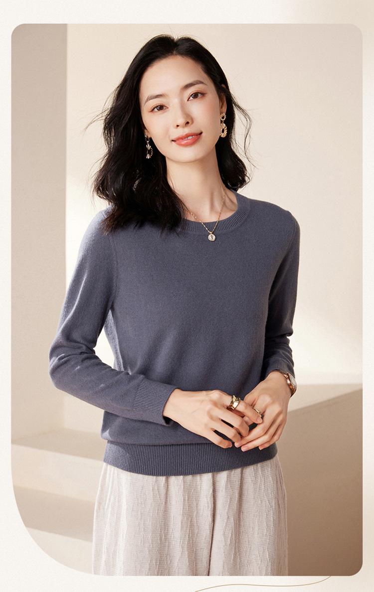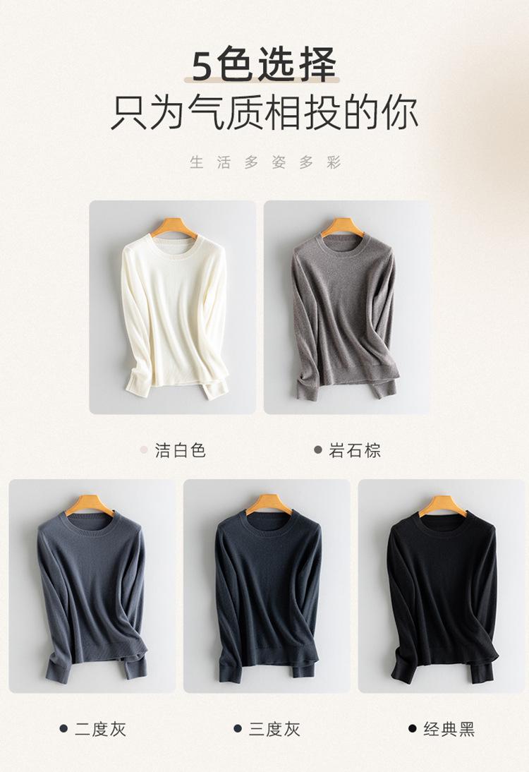 Suéter de Caxemira Pura 100% Crewneck para Mulheres Outono e Inverno Novo Suéter de Malha Outono e Inverno Suéter de Pulôver de Cor Sólida Base Camisa Top