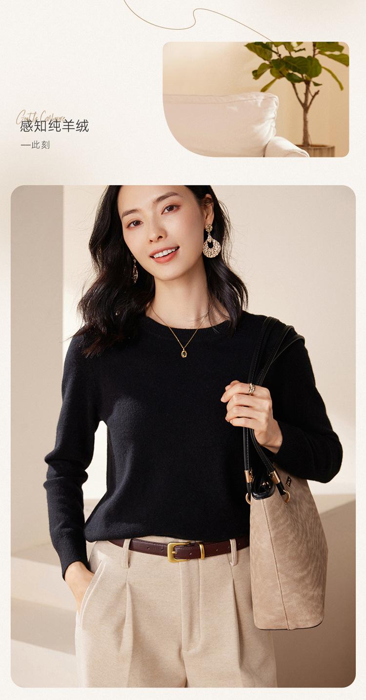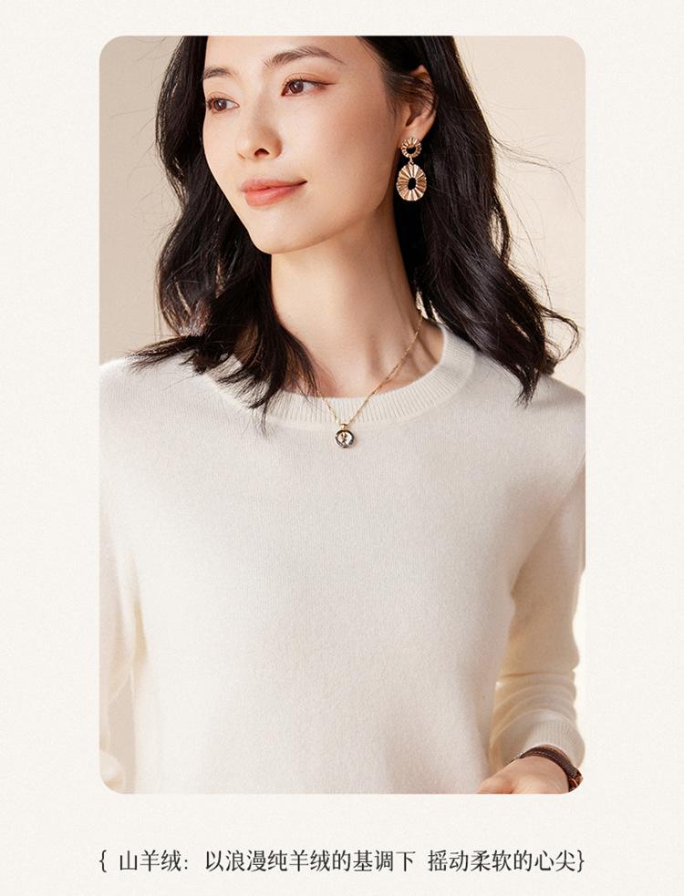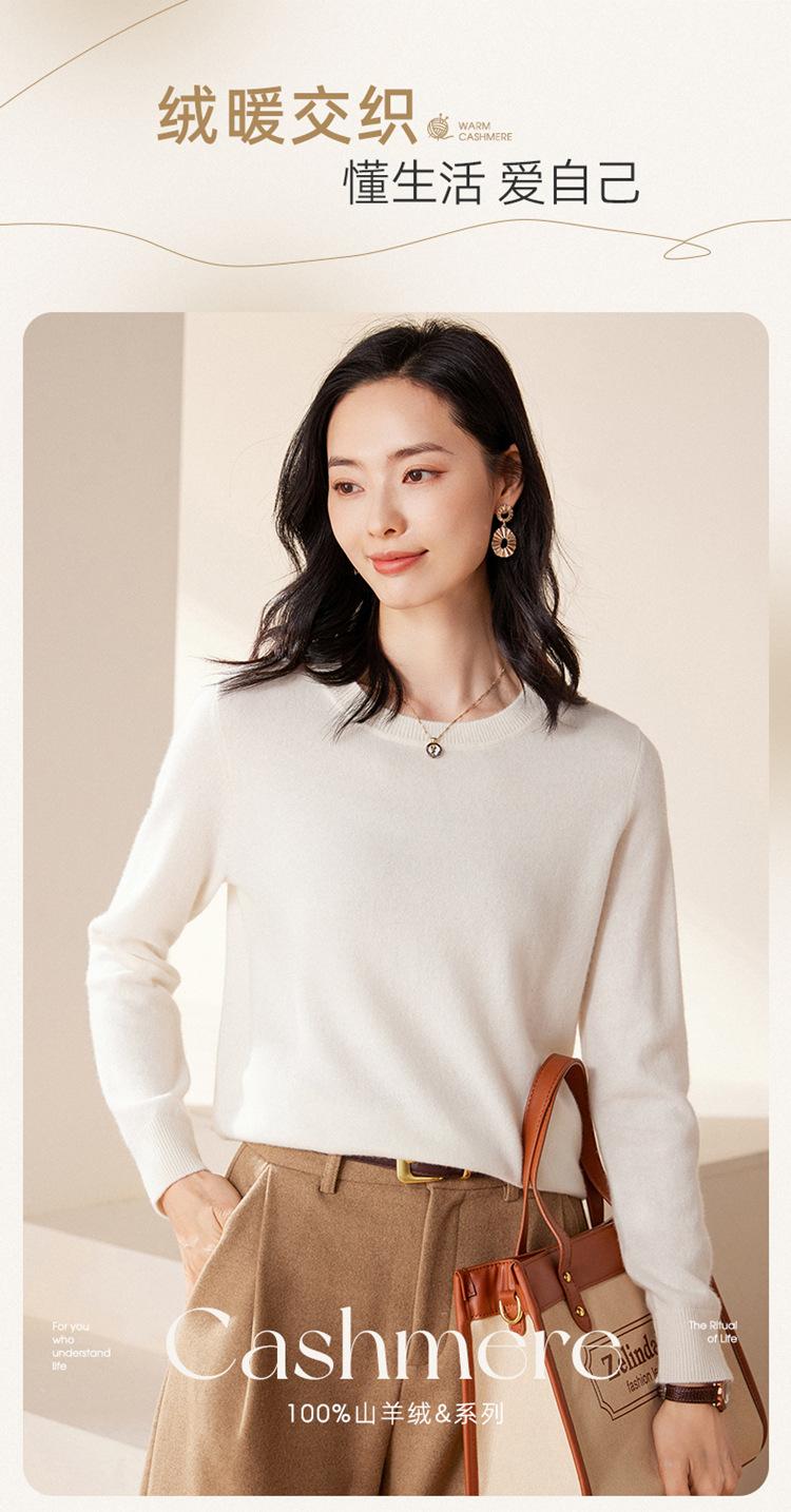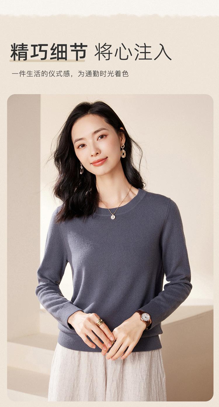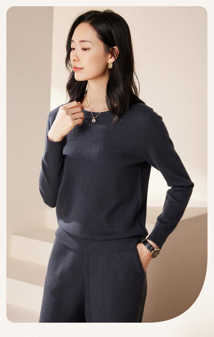 Suéter de Caxemira Pura 100% Crewneck para Mulheres Outono e Inverno Novo Suéter de Malha Outono e Inverno Suéter de Pulôver de Cor Sólida Base Camisa Top
