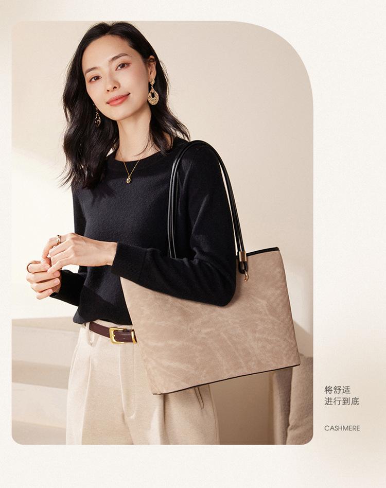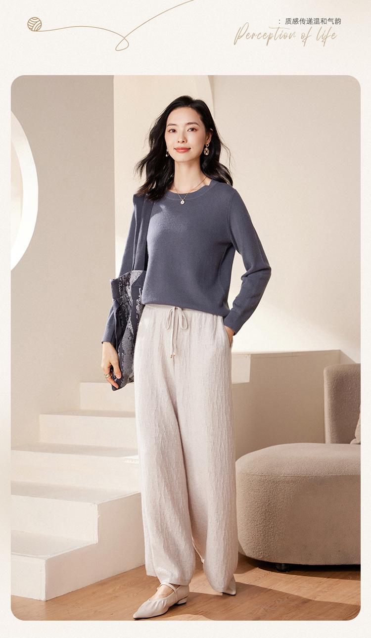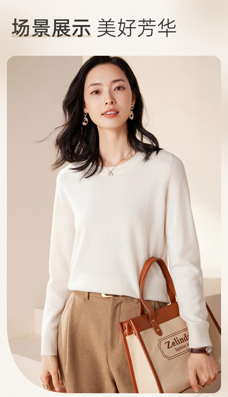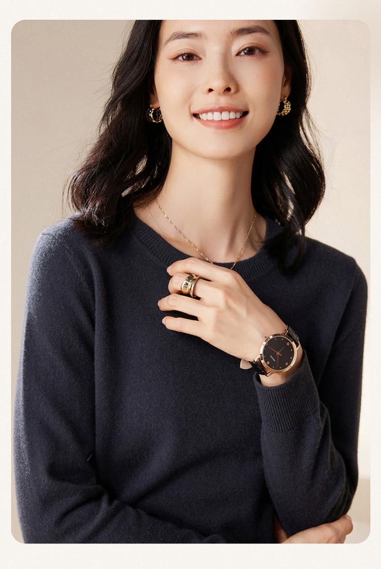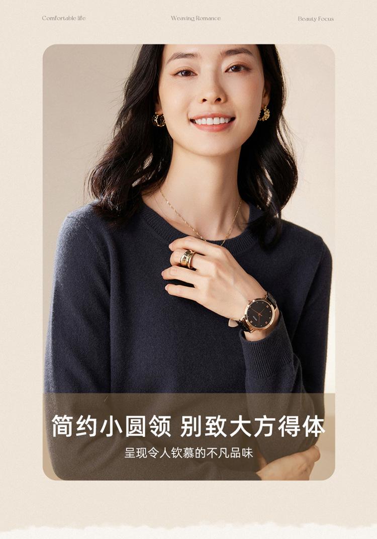 Suéter de Caxemira Pura 100% Crewneck para Mulheres Outono e Inverno Novo Suéter de Malha Outono e Inverno Suéter de Pulôver de Cor Sólida Base Camisa Top