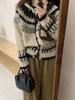 Outono e inverno novo estilo japonês contraste vintage com capuz cardigã de malha mulheres macio cera jacquard solto caiu ilha casaco