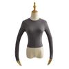[Algodão puro] Outono Nova Cor Sólida Ombro Top Feminino All-match Slim-fit Base T-shirt Seven-sleeve T-shirt
