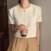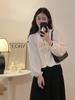 Sweet Bow Decote em V Cardigan de Manga Comprida Outono Estilo Coreano Design Costura Puff Manga Solto Top Curto para Mulheres