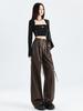 Calças de Couro Marrons de Perna Larga para Mulheres 2025 Outono e Inverno Novo Estilo Melard Couro PU Retas Casuais Calças Compridas Marrom Garota Apimentada