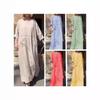 2024 Europeu e Americano Transfronteiriço Verão Mulheres Cor Sólida Decote Redondo Algodão Linho Manga Longa Casual Plissado Bilateral Bolso Vestido