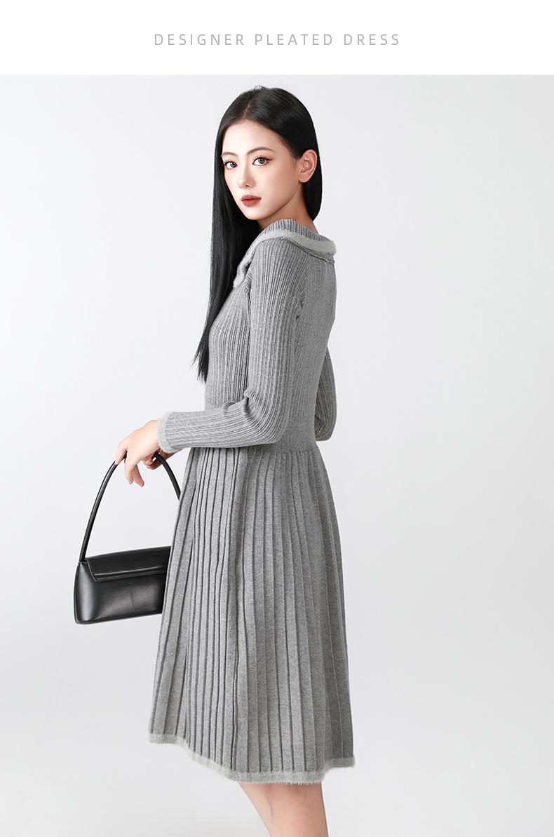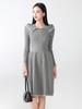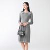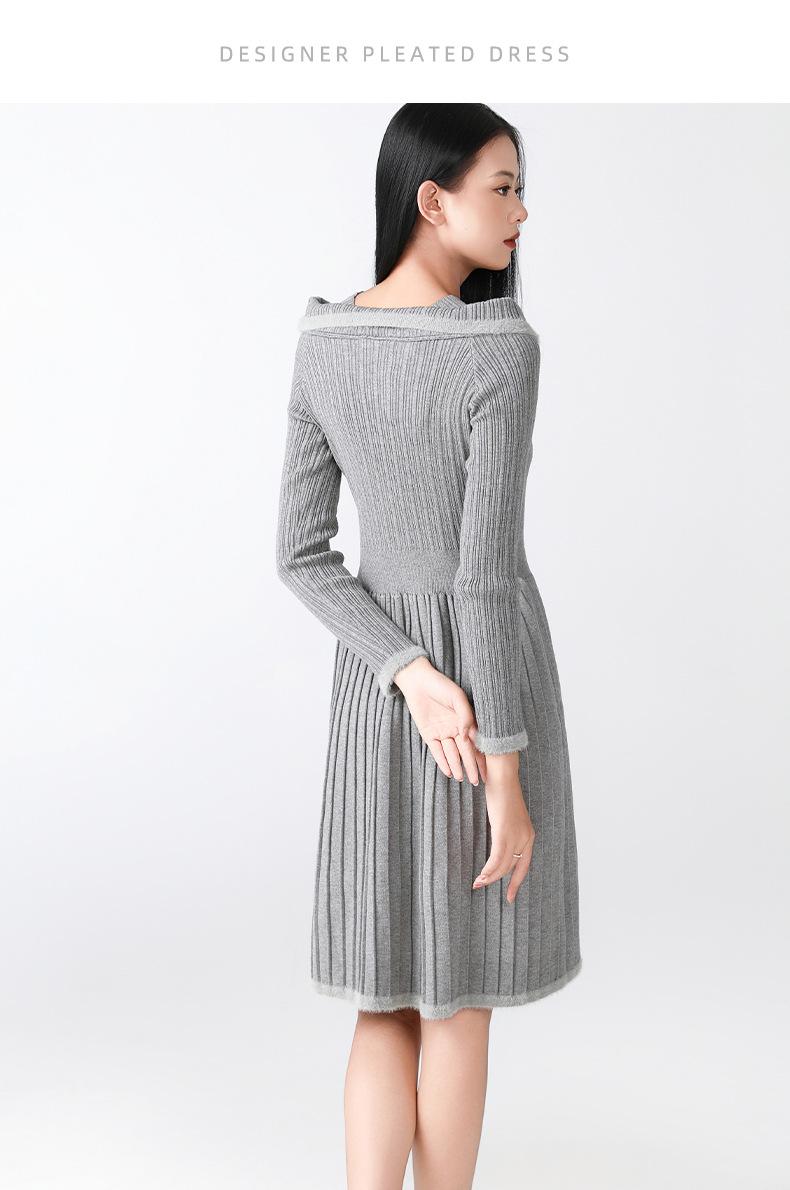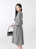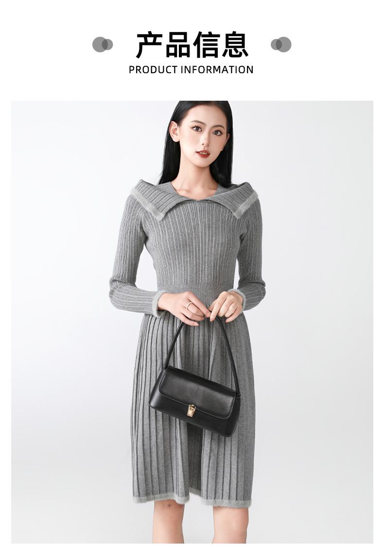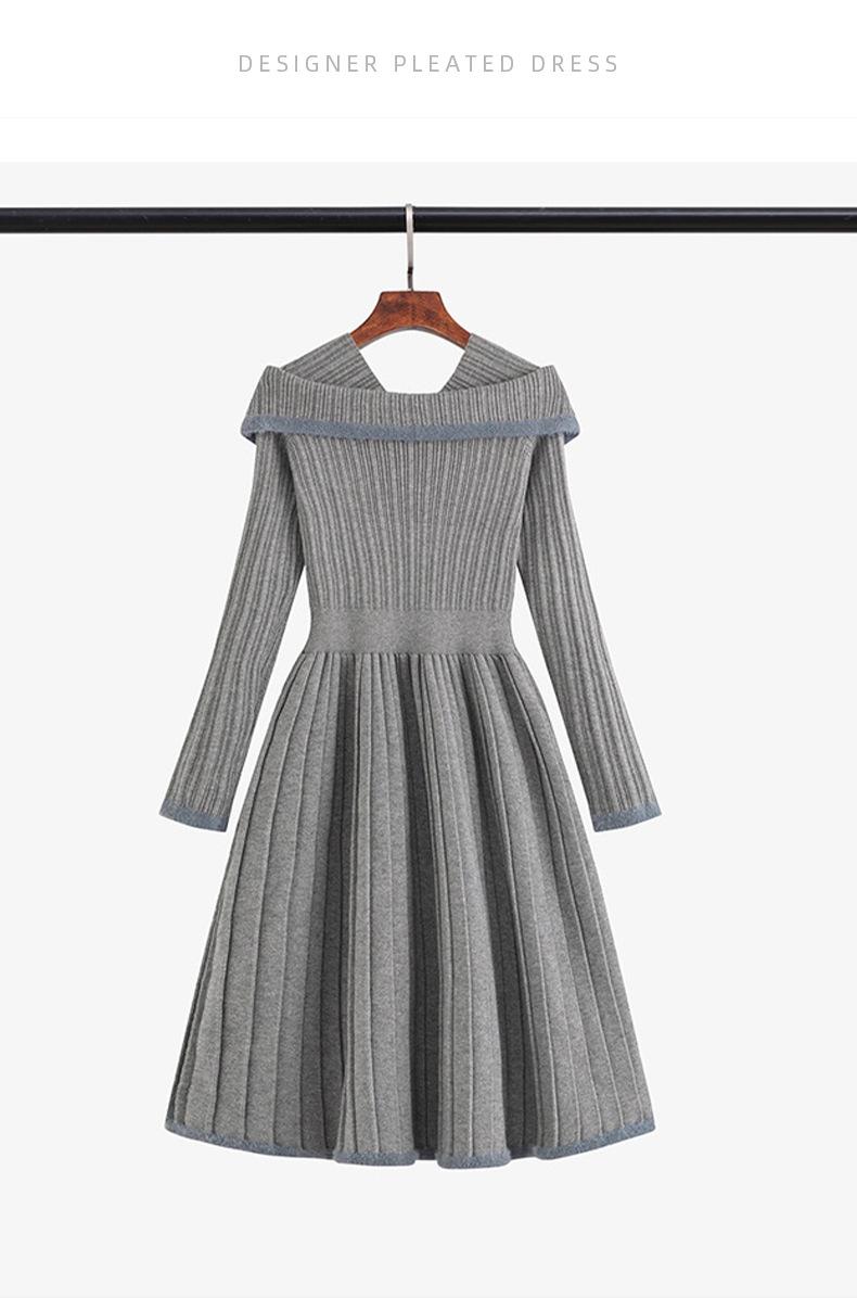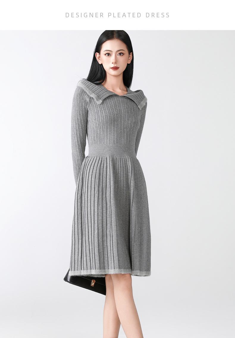 Desgaste do início do outono com ombro plissado Mulheres 2024 Novo Elegante Slim-fit Emagrecimento Cintura Vestido de manga comprida Vestido