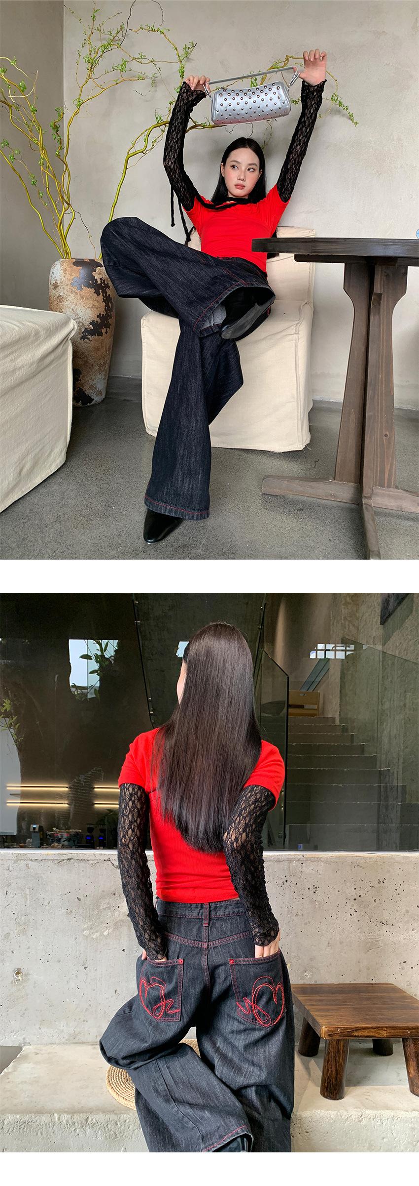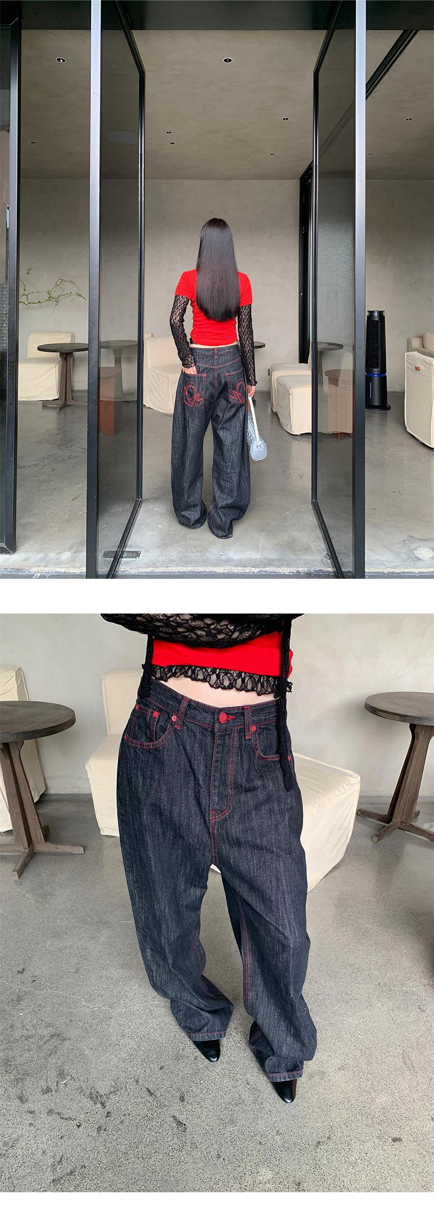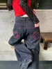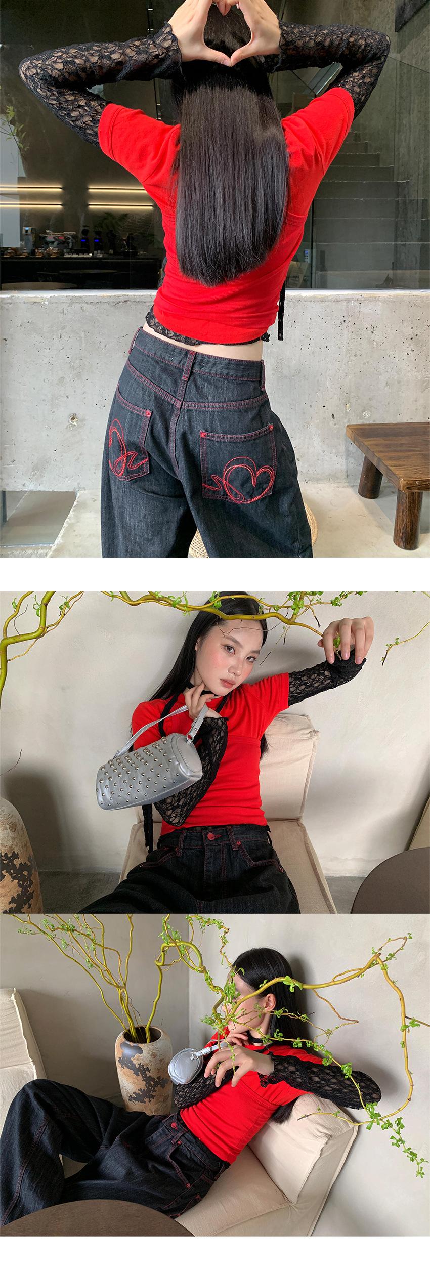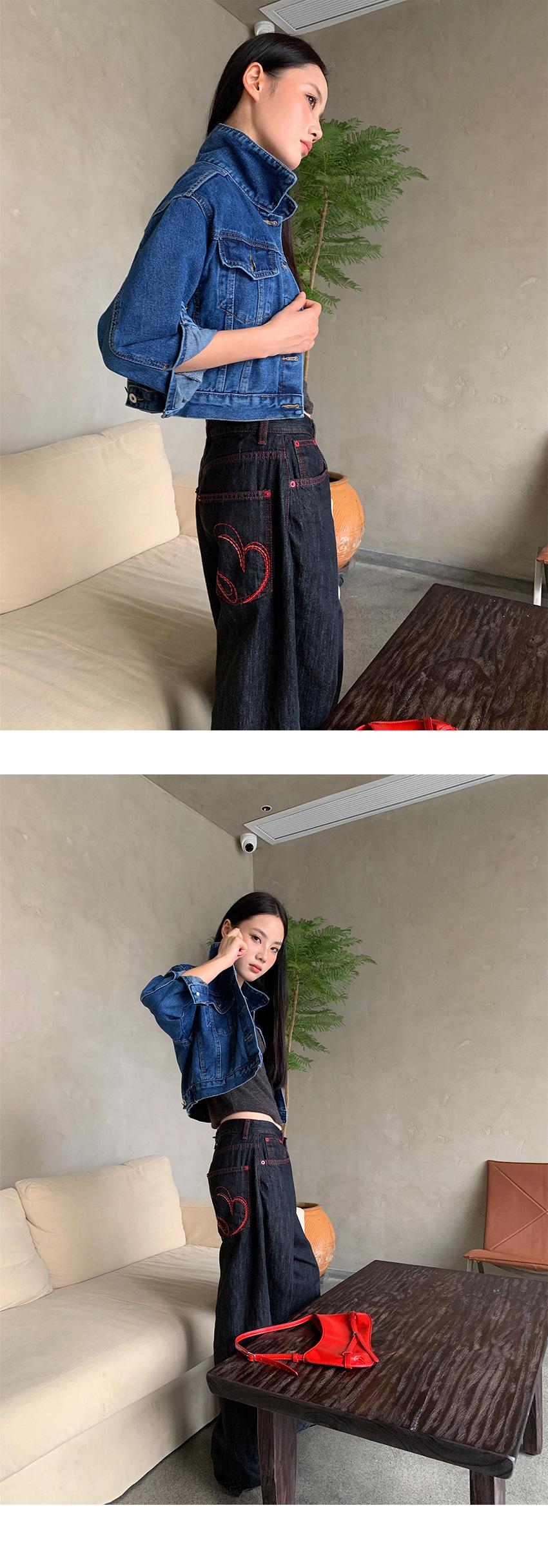 [9Hour] Calça Jeans Bordada Coração Retro Street para Mulheres 2024 Outono Denim Calça Casual para Mulheres Cy1093