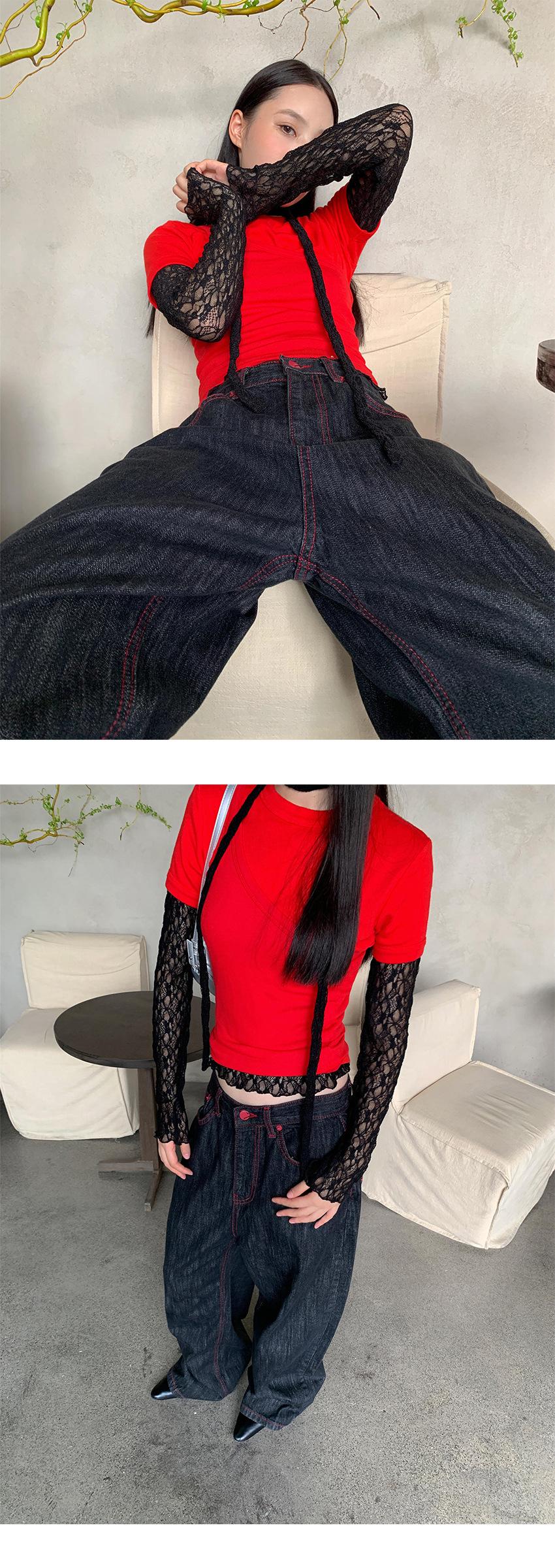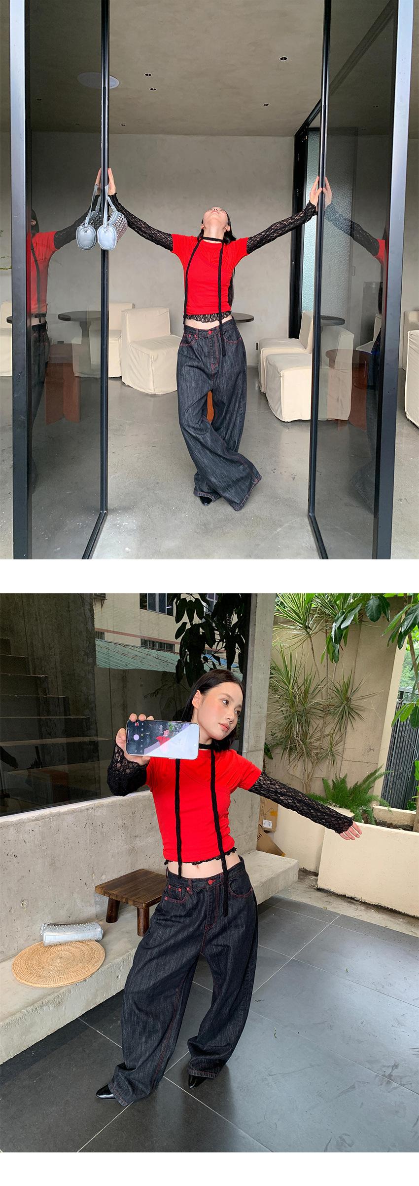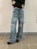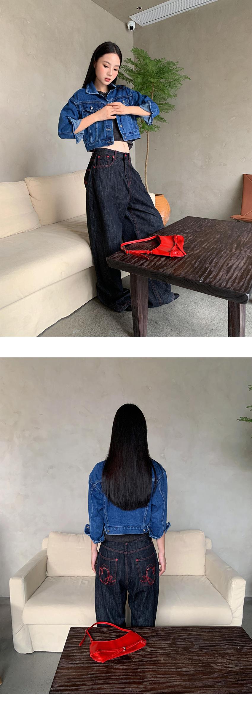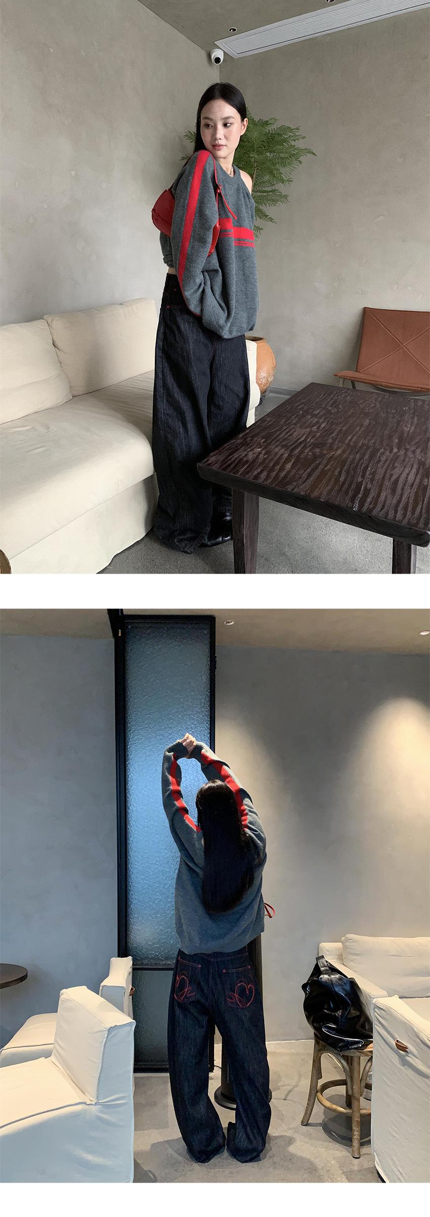 [9Hour] Calça Jeans Bordada Coração Retro Street para Mulheres 2024 Outono Denim Calça Casual para Mulheres Cy1093