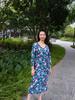 24023 Vestido elegante para pausa para chá no local de trabalho, roupa de trabalho, estampa, decote em V, vestido com cintura