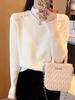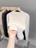 Meia-gola alta extra-grossa lã forrada camisa de assentamento das mulheres outono e inverno estilo ocidental quente interior de uma peça de veludo camisola das mulheres camisola top