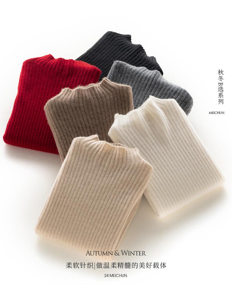 Meia-gola alta suéter apertado feminino solto interior quente cashmere suéter slim-fit pull-out malha nicho base camisa