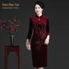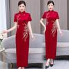 Vestido de noiva cheongsam para sogra Xi, vestido azul com gola alta bordada retrô 2024, outono