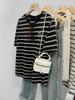 Camiseta de manga curta com ombro de amor listrado feminina verão 2024 nova camiseta de nicho de design de estilo coreano solto