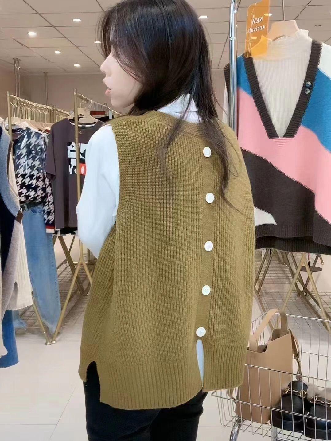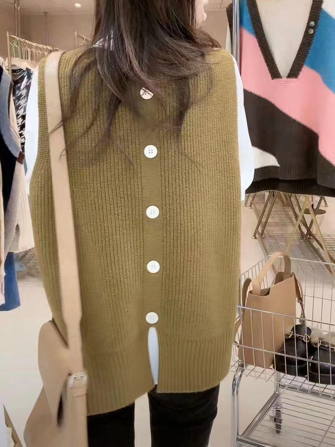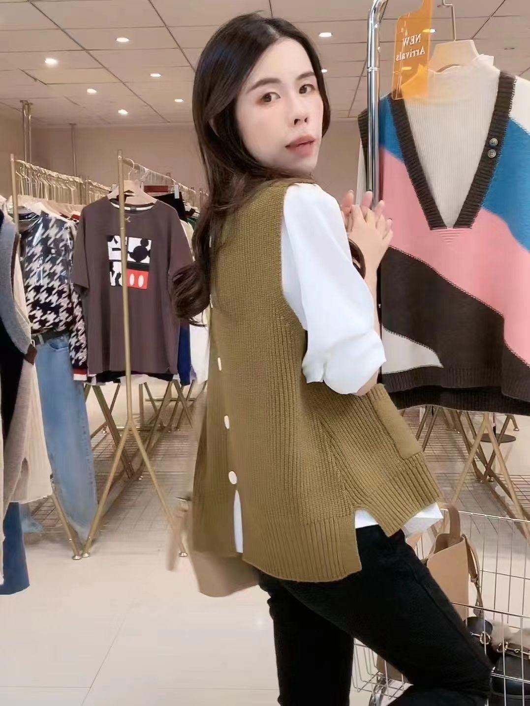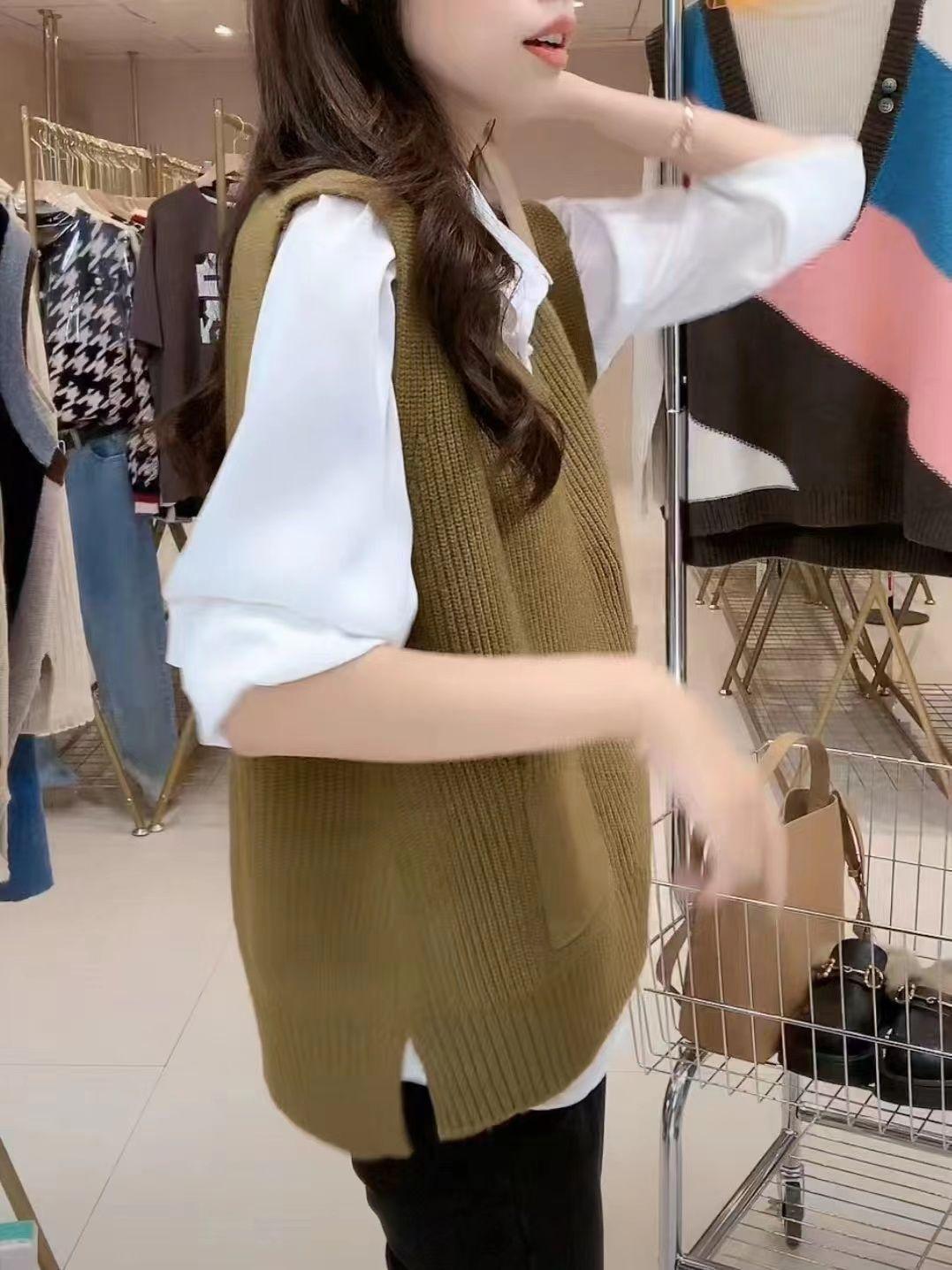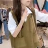 Plus size colete de malha com decote em V feminino 2023 novo estilo vintage bolso sem mangas colete pulôver top solto