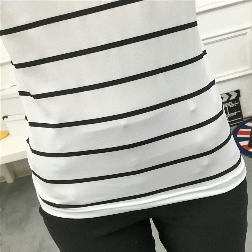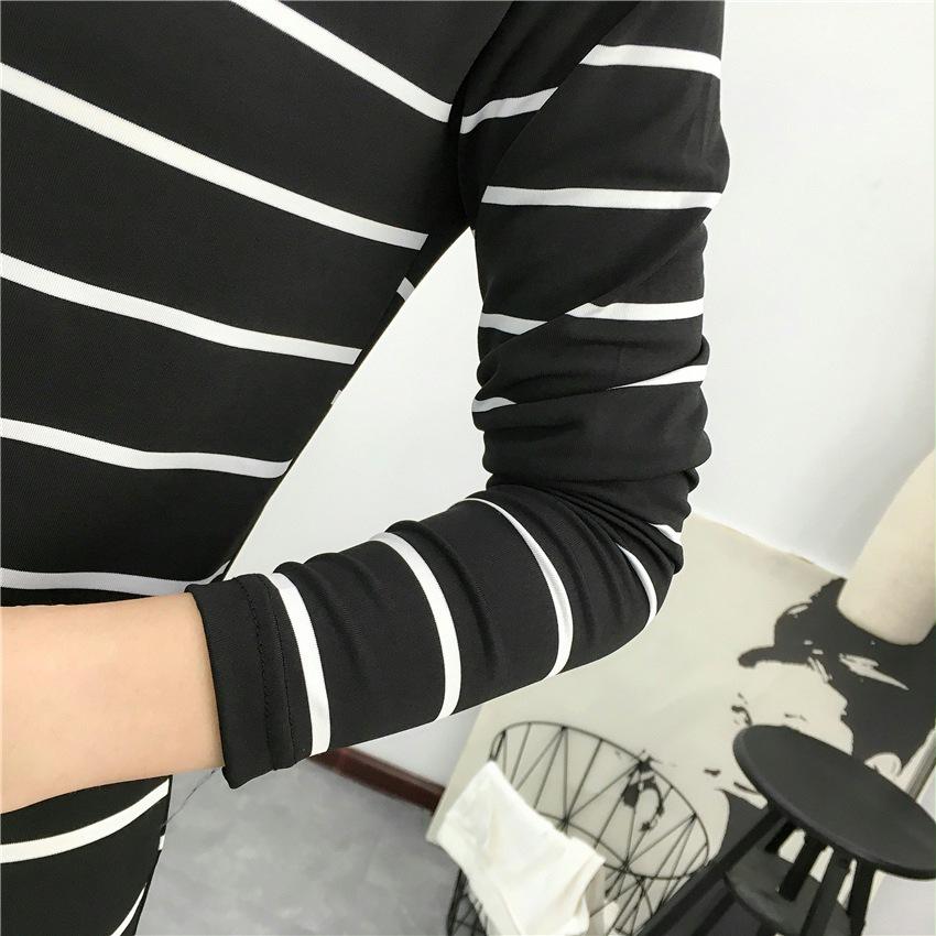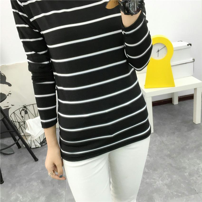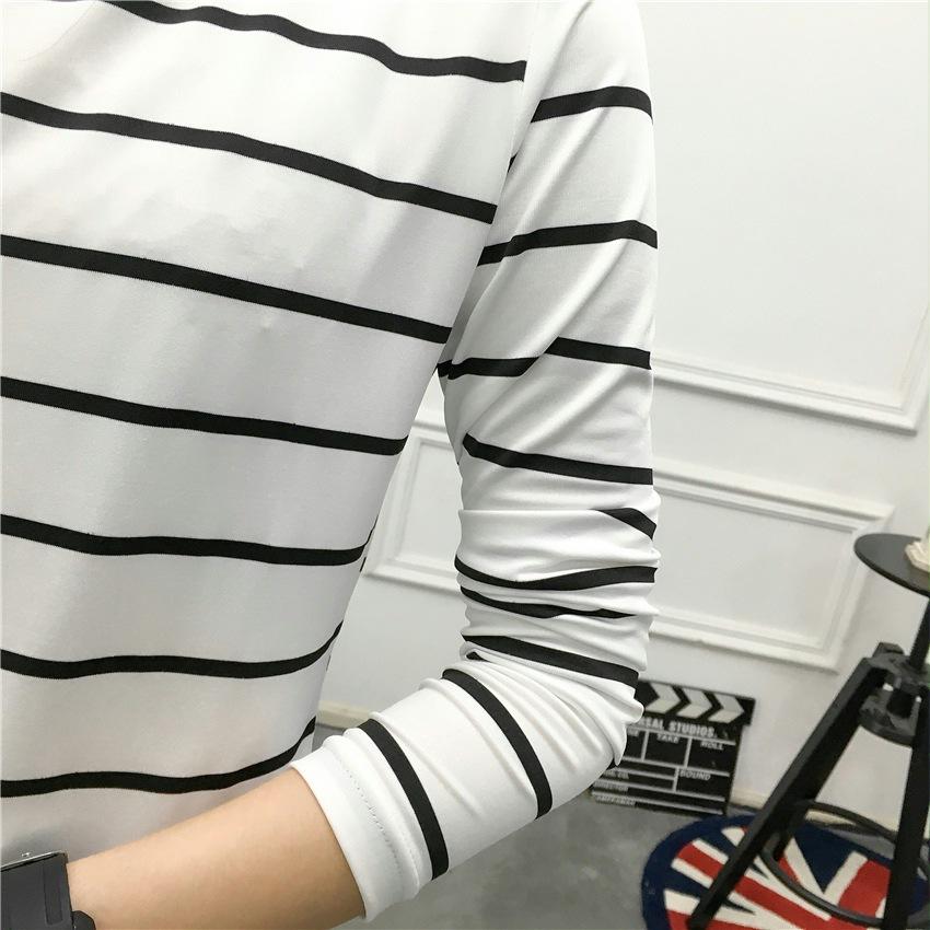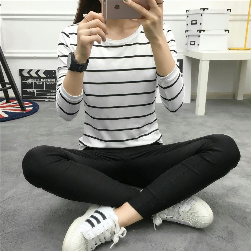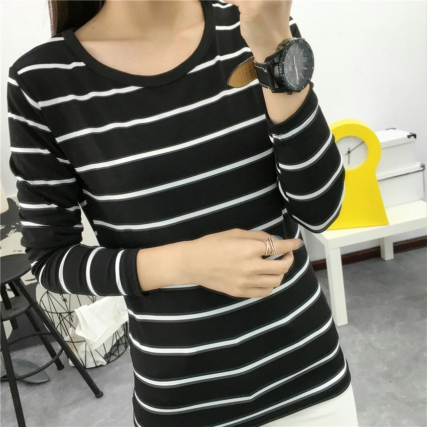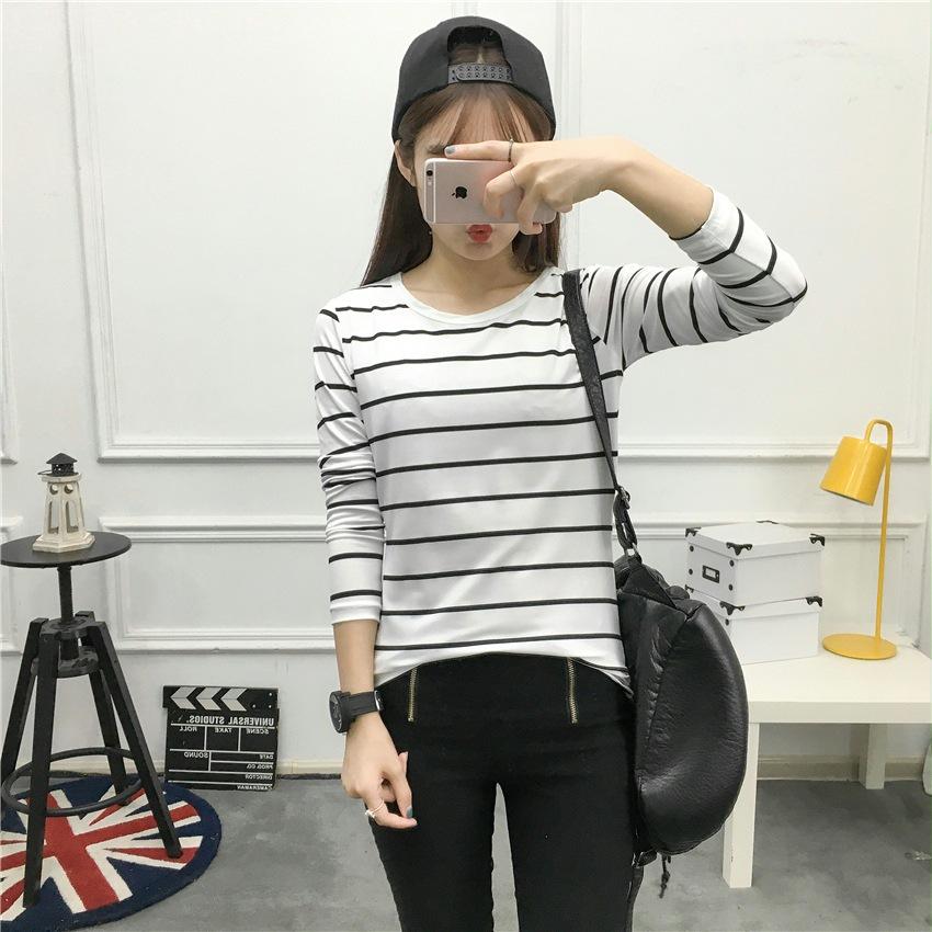 Preto e Branco Listrado Feminino 2024 Primavera Novo Estilo Coreano Listrado Solto Emagrecimento Camiseta Feminina de Manga Comprida Estudante Top Feminino