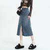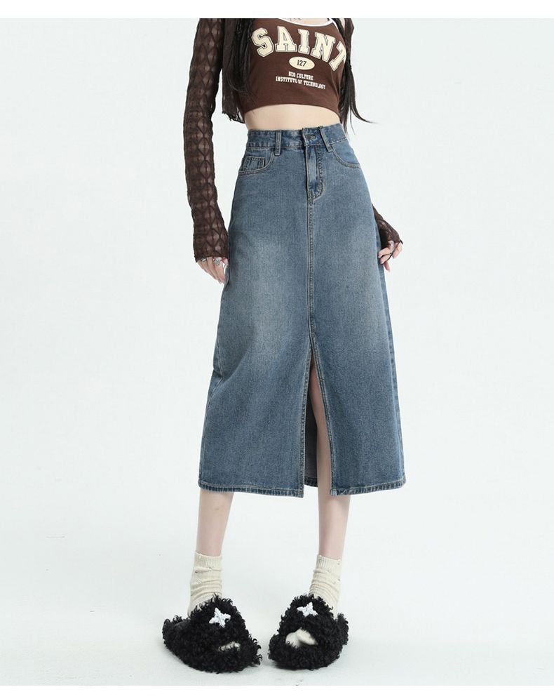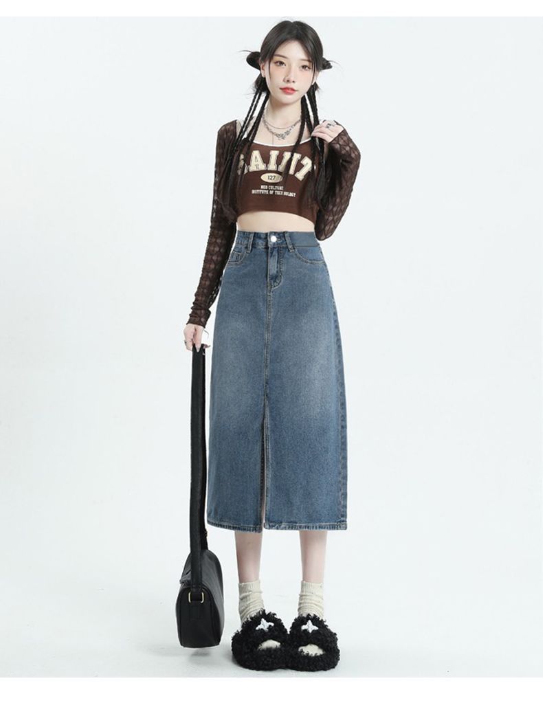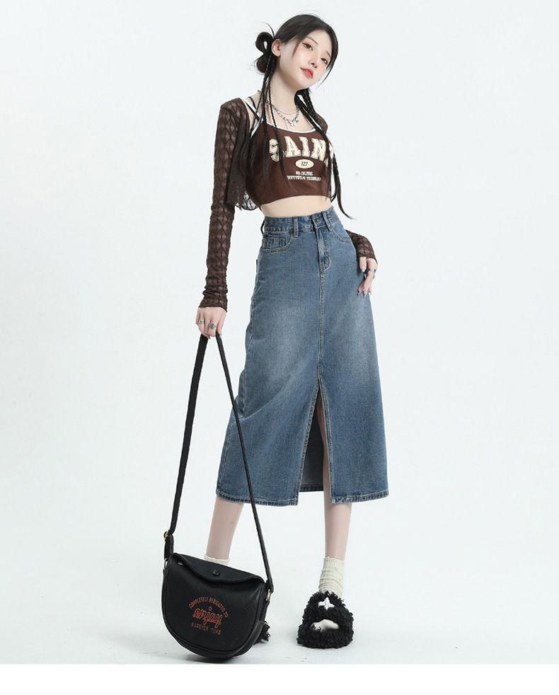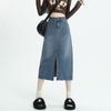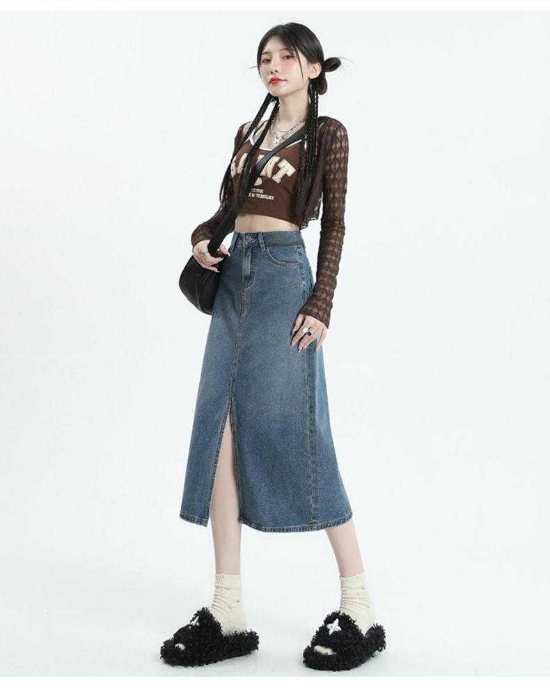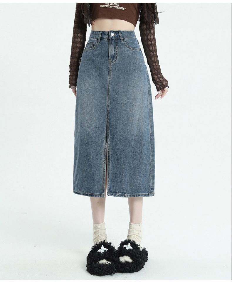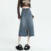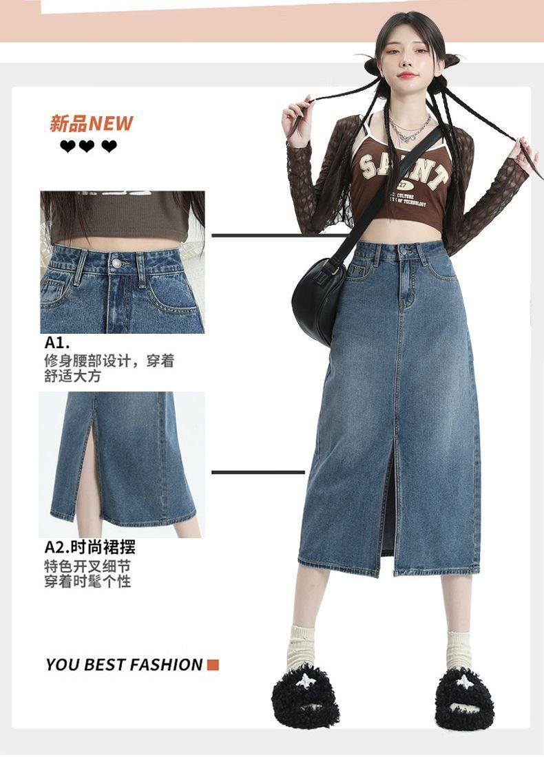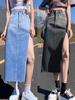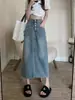 Saia jeans feminina verão cintura alta saia quadril 2024 nova retrô reta solta a- palavra comprimento médio sobressaia