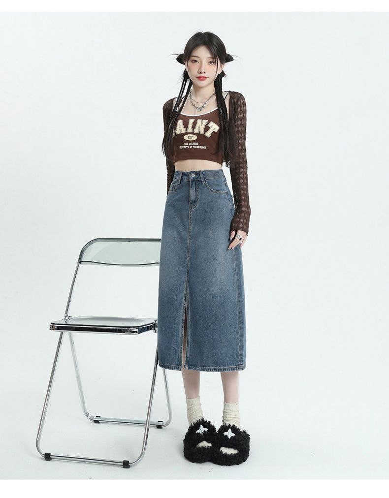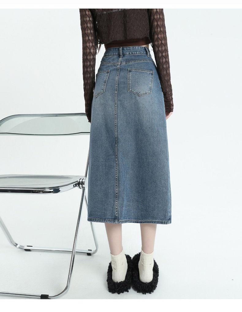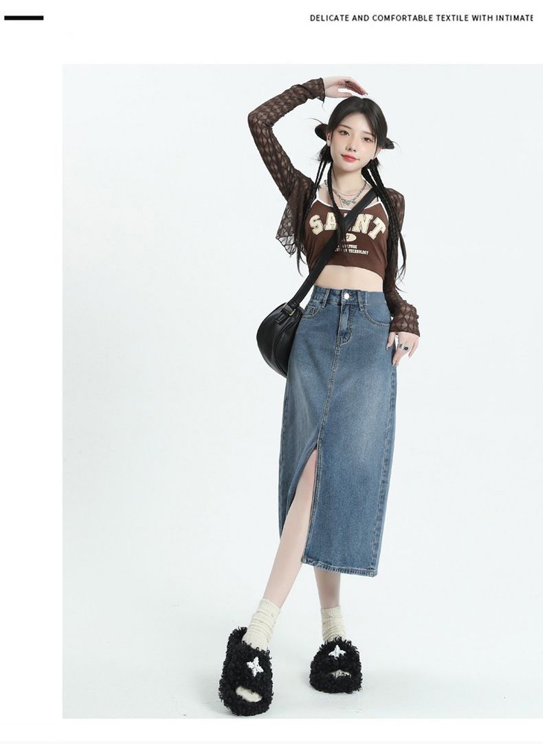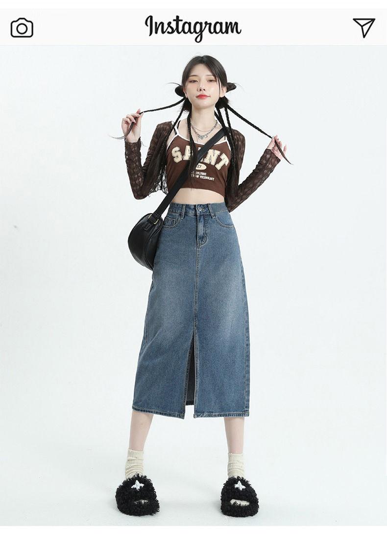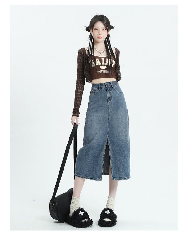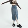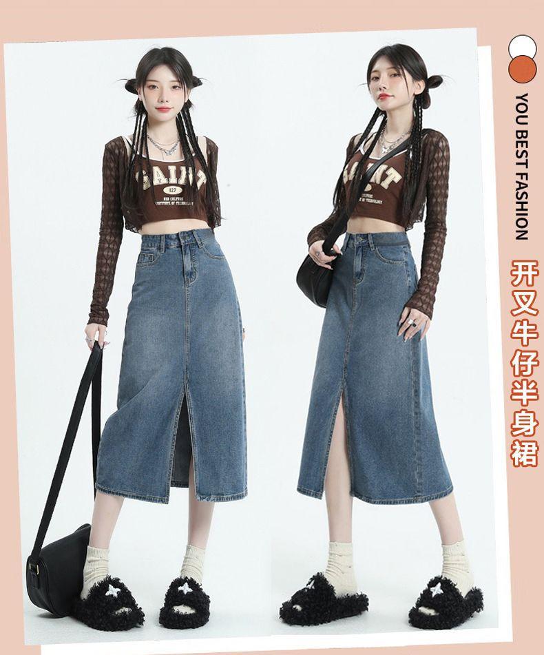 Saia jeans feminina verão cintura alta saia quadril 2024 nova retrô reta solta a- palavra comprimento médio sobressaia