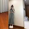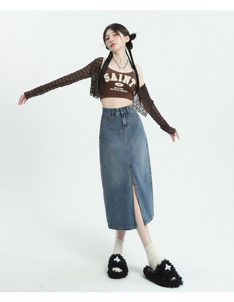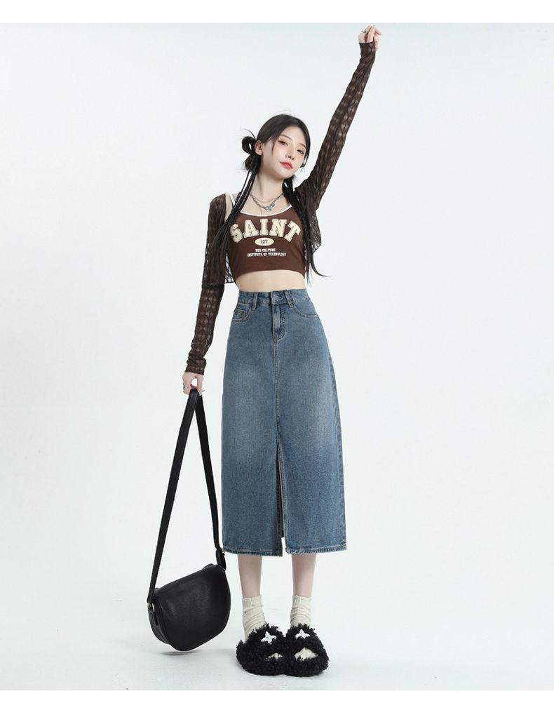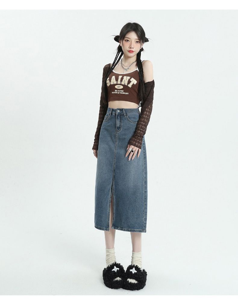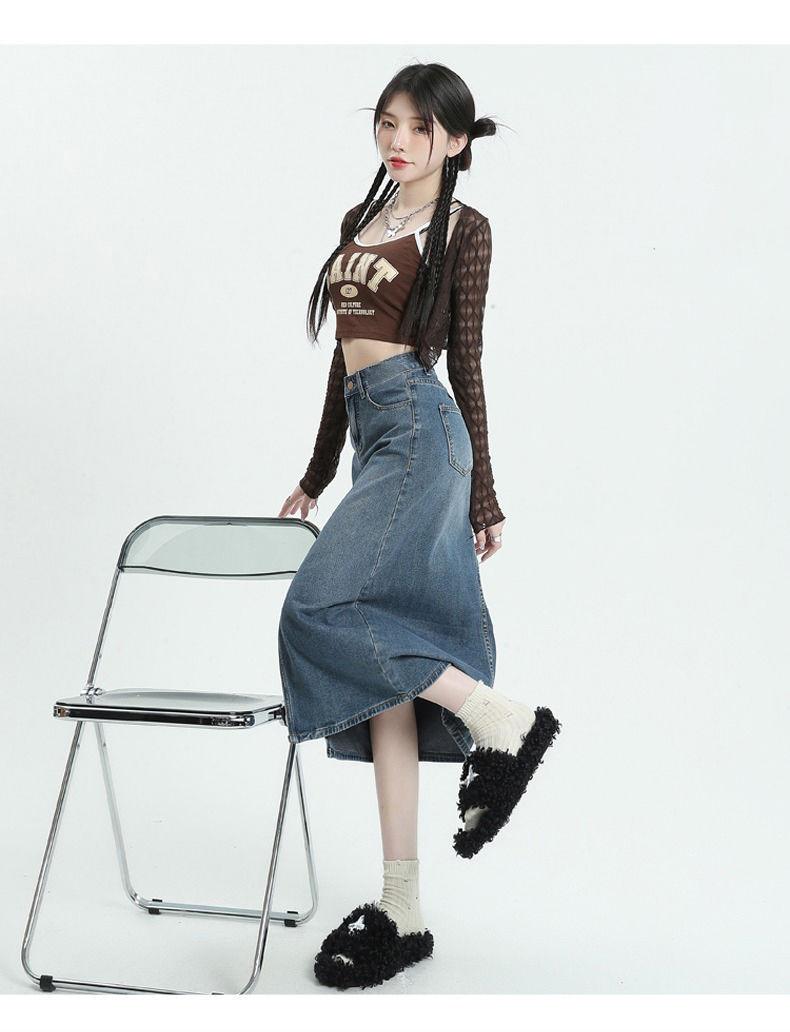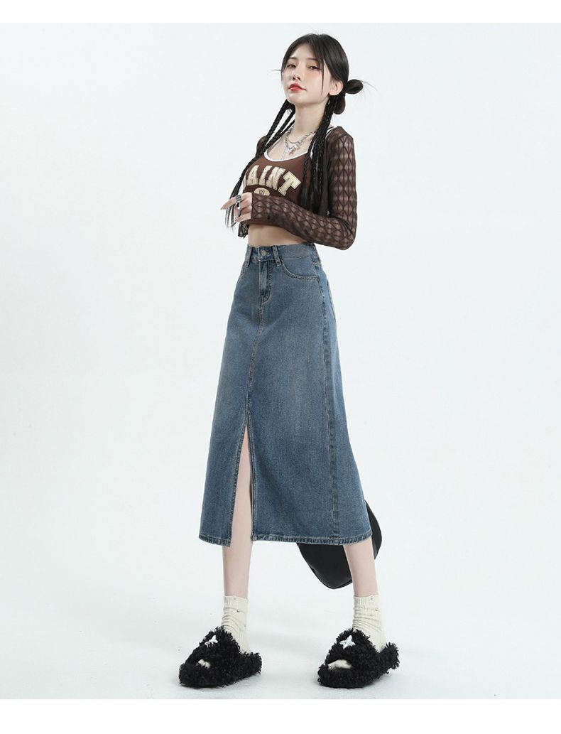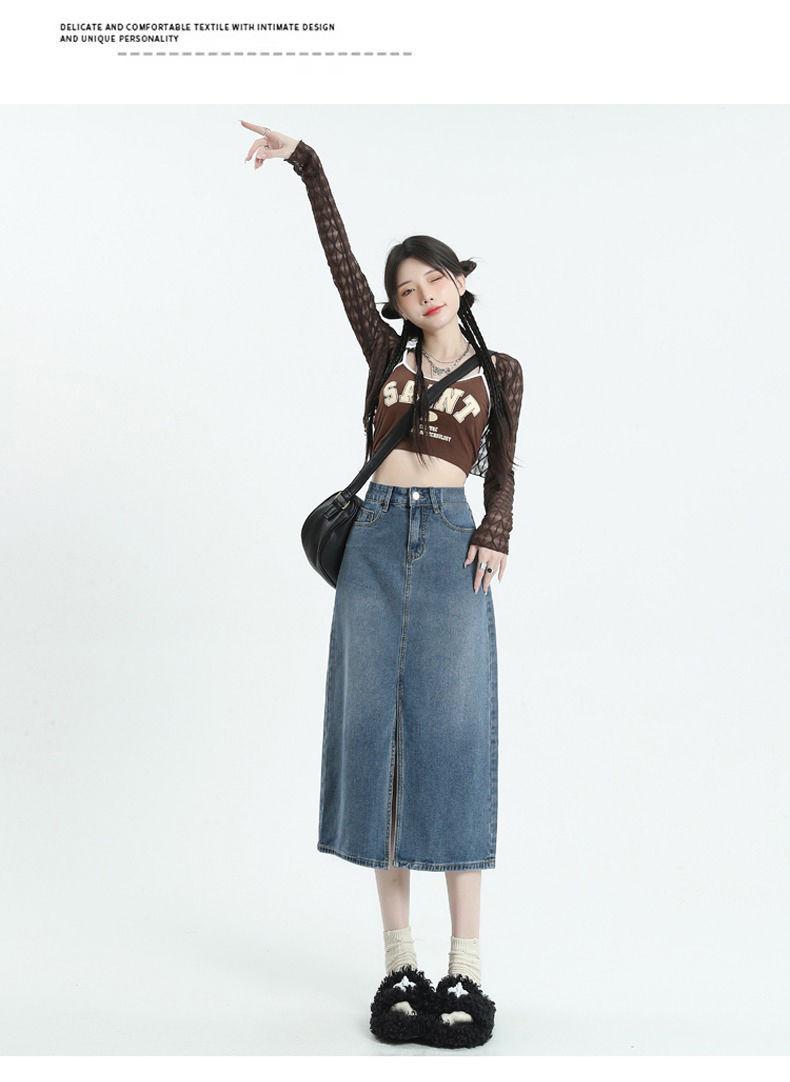 Saia jeans feminina verão cintura alta saia quadril 2024 nova retrô reta solta a- palavra comprimento médio sobressaia