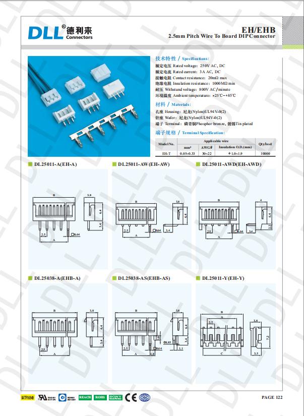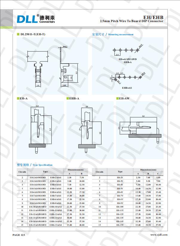 EH-6A DIP, P = passo branco de 2,5 mm: 2,5 mm