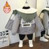 Jaqueta de Algodão com Capuz Estilosa Solta com Listras Verticais Estilo Coreano Outono Inverno 2025 para Meninas Casaco Legal Forrado com Lã para Meninos Atacado