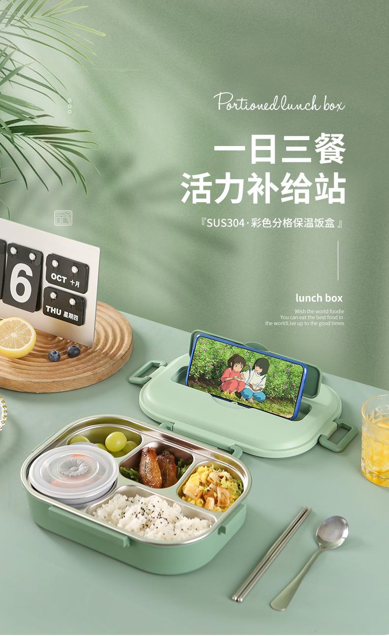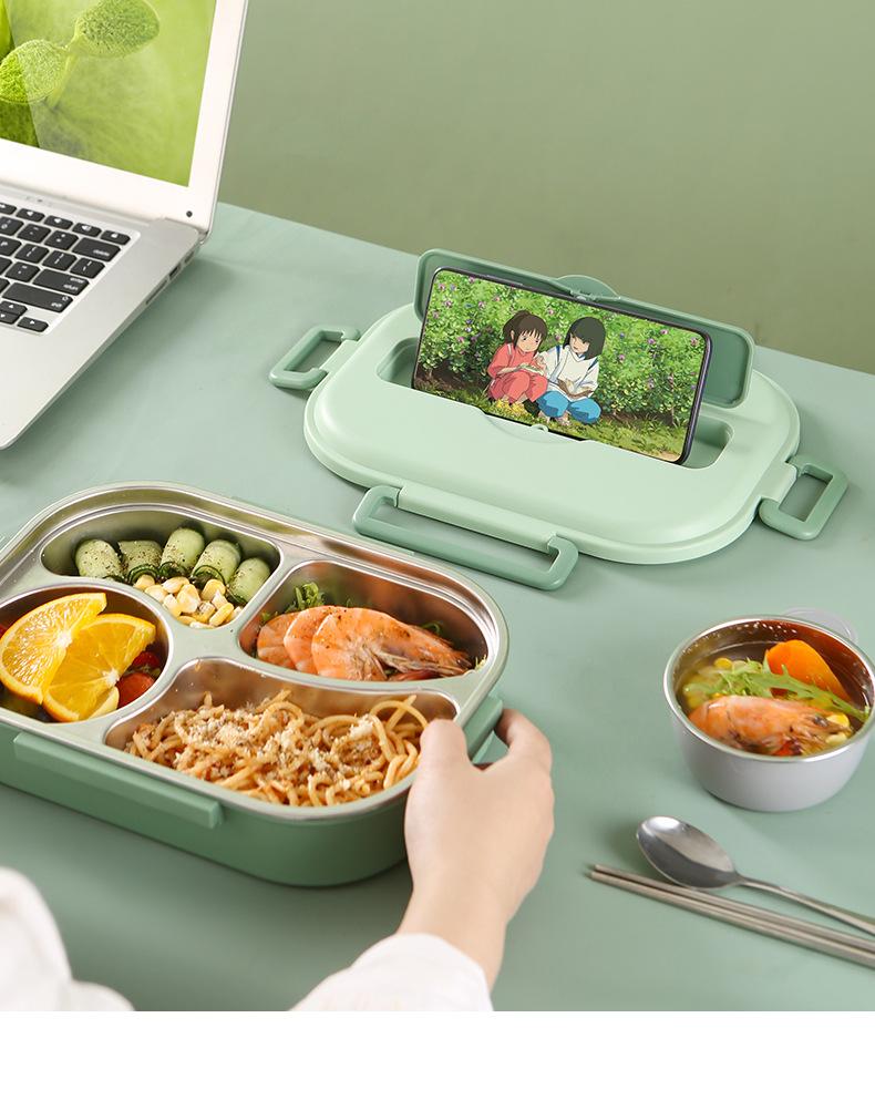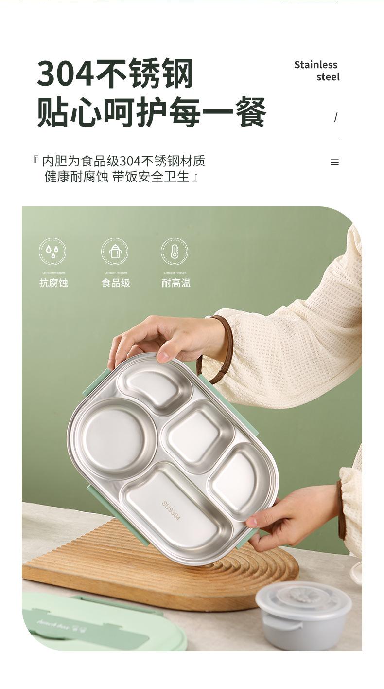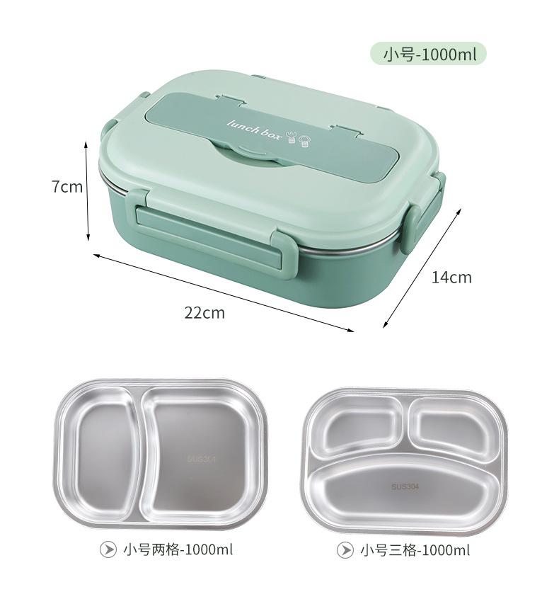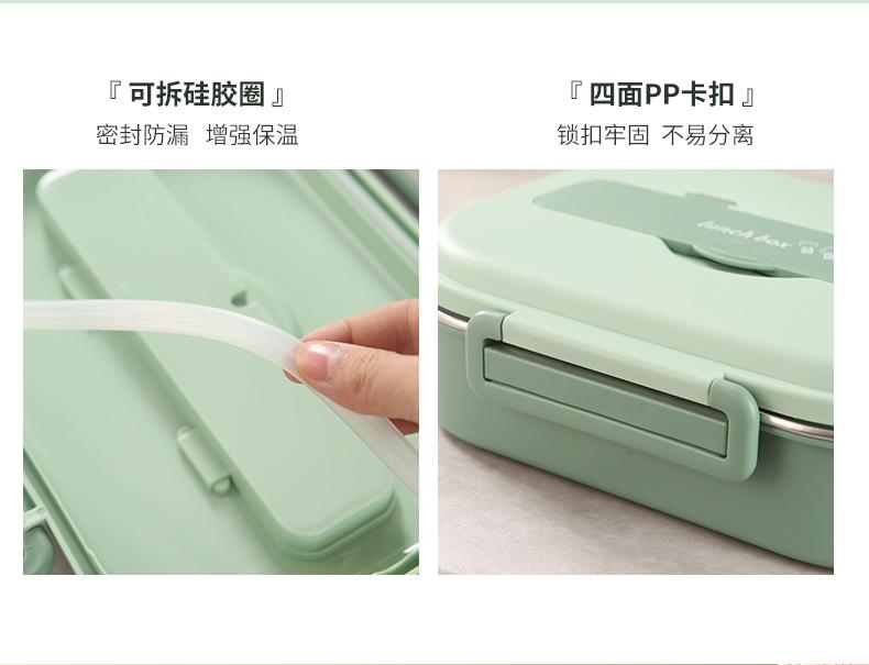Lancheira Térmica Retangular de Aço Inoxidável 304 Selada Separada Portátil Estudante Conservação de Frescor Lancheira Verde