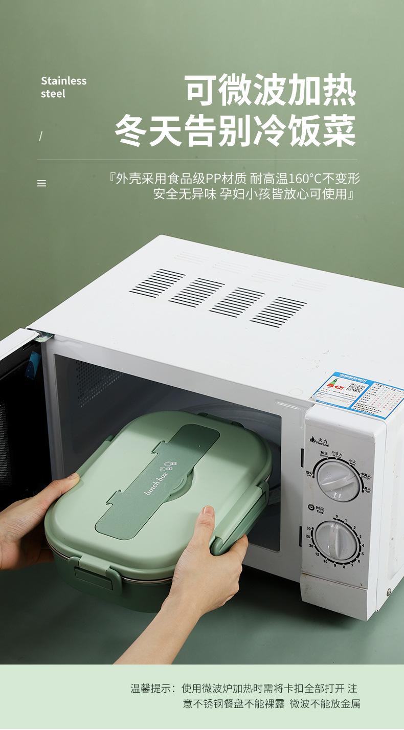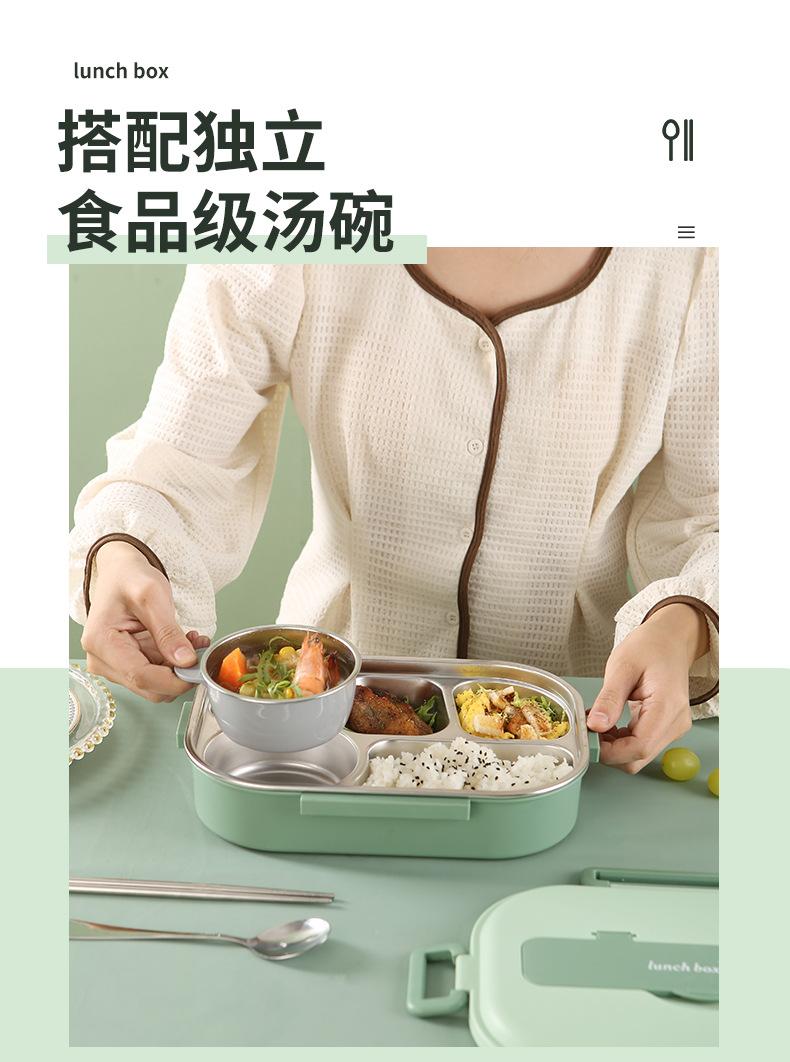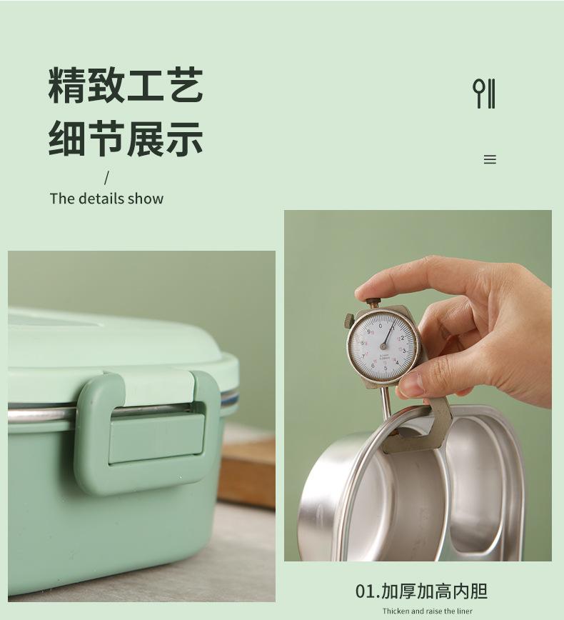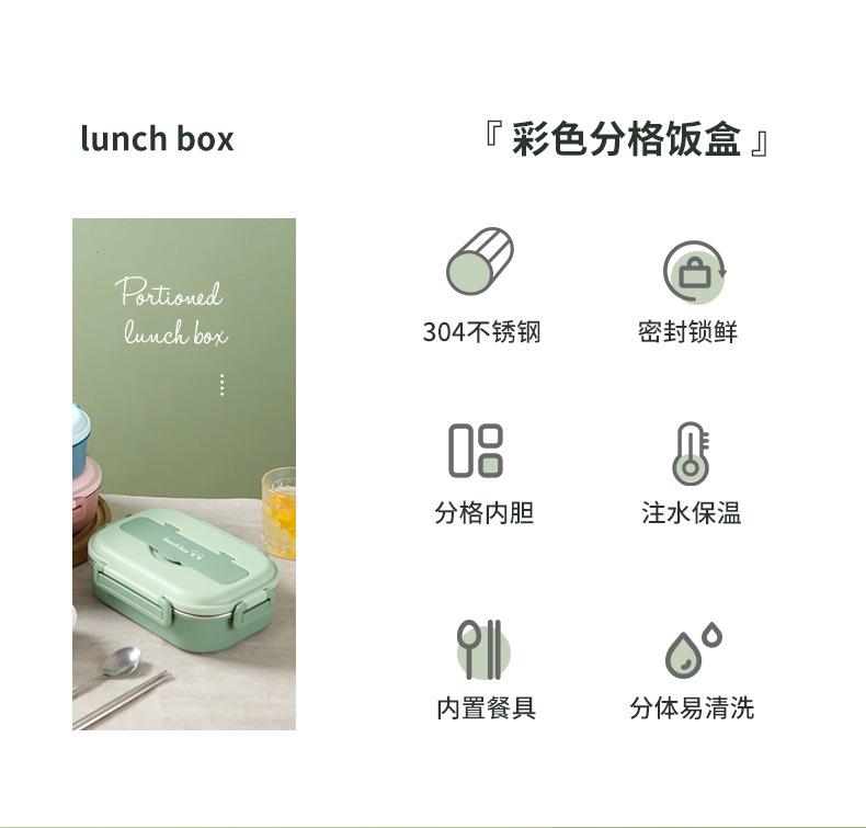 Lancheira Térmica Retangular de Aço Inoxidável 304 Selada Separada Portátil Estudante Conservação de Frescor Lancheira Verde